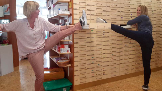 Pech hat Stretching in der Apotheke eingeführt. Als gute Streckhilfe erweist sich bespielsweise eine offene Schublade des Generalalphabets. Foto: Pech