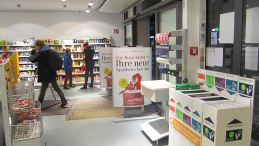 Weil die Apotheke Zur Rose Mitglied im Apothekerverband ist, kommt in den dm-Filialen jetzt erstmals das Apotheken-A zum Einsatz.