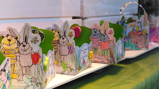 Apothekerin Dimitriya Nikolova in der Franken-Apotheke in Wiesbaden organisiert für Kinder eine Körbchen-Bastelaktion. Foto: Franken-Apotheke