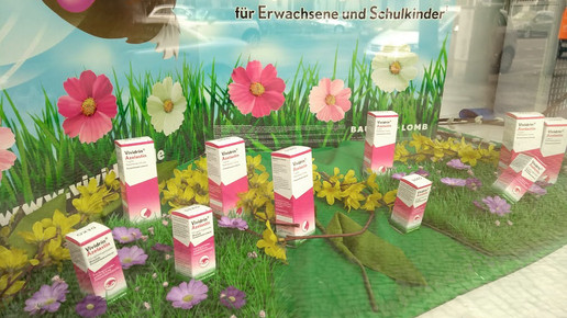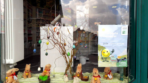 Viele Apotheken nutzen die Oster-Feiertage, um ihre Schaufenster passend zu dekorieren. Bunte Eier und gebastelte Körbchen stehen jedoch in Konkurrenz mit dem Frühjahrsthema Allergie.