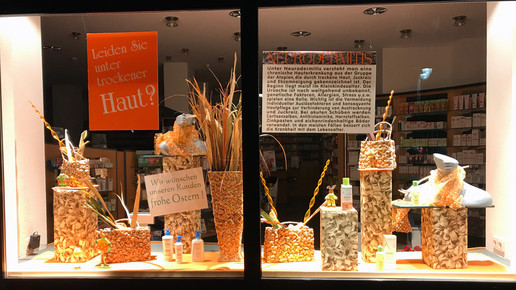 Buntes Treiben bei den Kollegen: Der Frühling ist endlich da und Ostern steht vor der Tür. Da holen auch die Pharmazeuten Hasen und bunte Eier aus dem Keller und dekorieren ihre Apothekenschaufenster.