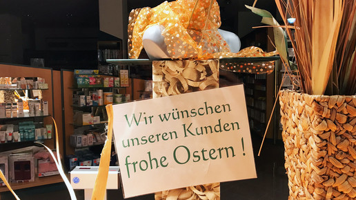 Hinzu kommen Osterwünsche für die Kunden.Foto: APOTHEKE ADHOC