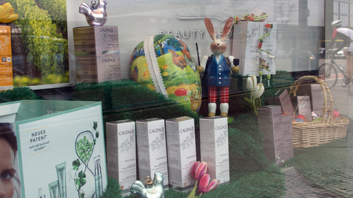 Auch Caudalie wird gerne neben Ostereier und Hasen gestellt.Foto: APOTHEKE ADHOC