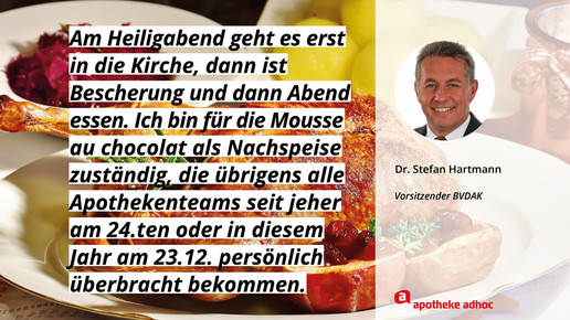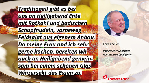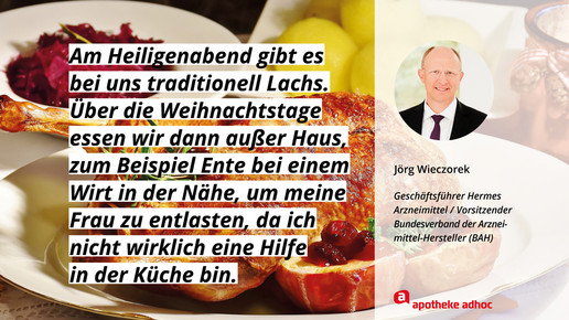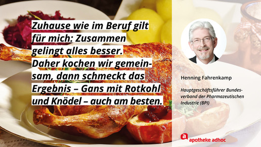 Weihnachten steht vor der Tür. Wie der Festtagsbraten aussehen wird und vor allem wer ihn zubereitet, haben uns Promis der Pharma- und Apothekenbranche verraten.