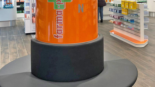 Die Apotheken müssen innen und außen umgestaltet werden und präsentieren sich im auffälligen Grün-Orange. Foto: Farma-Plus