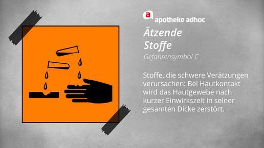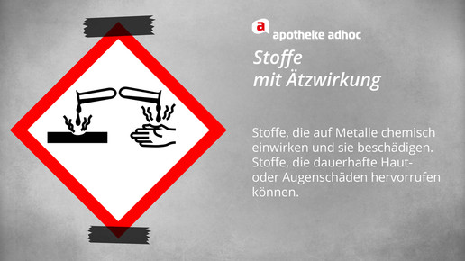 Flamme, Totenkopf, verendeter Fisch: In der Apotheke begegnen einem täglich verschiedene Gefahrstoffsymbole. Sowohl die alten Symbole als auch die neuen GHS-Piktogramme sollten beherrscht werden.