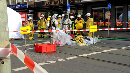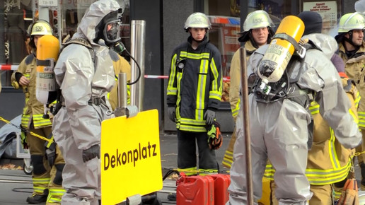 In der Engel-Apotheke in Duisburg wurden drei Mitarbeiter verletzt. Bei Aufräumarbeiten im Labor entzündete sich eine Substanz. Feuerwehr und Polizei waren im Einsatz.