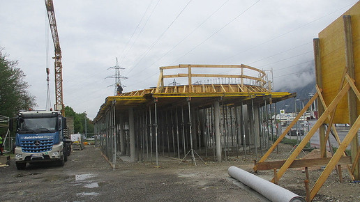 Im Mai wurde die Decke des Erdgeschoßes aktuell fertig gestellt. Anschließend wurden die Wände des ersten Obergeschoßes errichtet.Foto: Peneder
