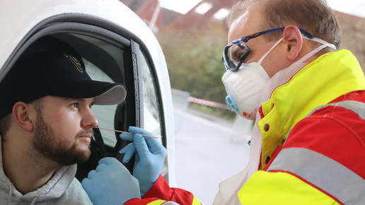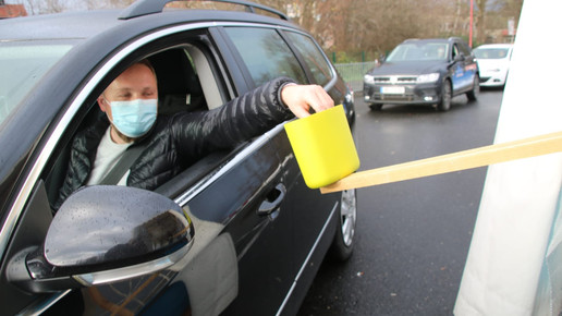 Abstrich am Autoschalter: In Ahlen und Münster werden Sars-CoV-2-Schnelltests an einem Drive-In angeboten.Foto: Christian Wolff