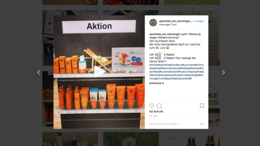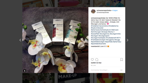 Freiwahl-Lieblinge und Aktionen: Hersteller von Apothekenkosmetik und Verbraucherinnen nutzen Instagram regelmäßig. Auch Apotheken posten neue Dekoideen.