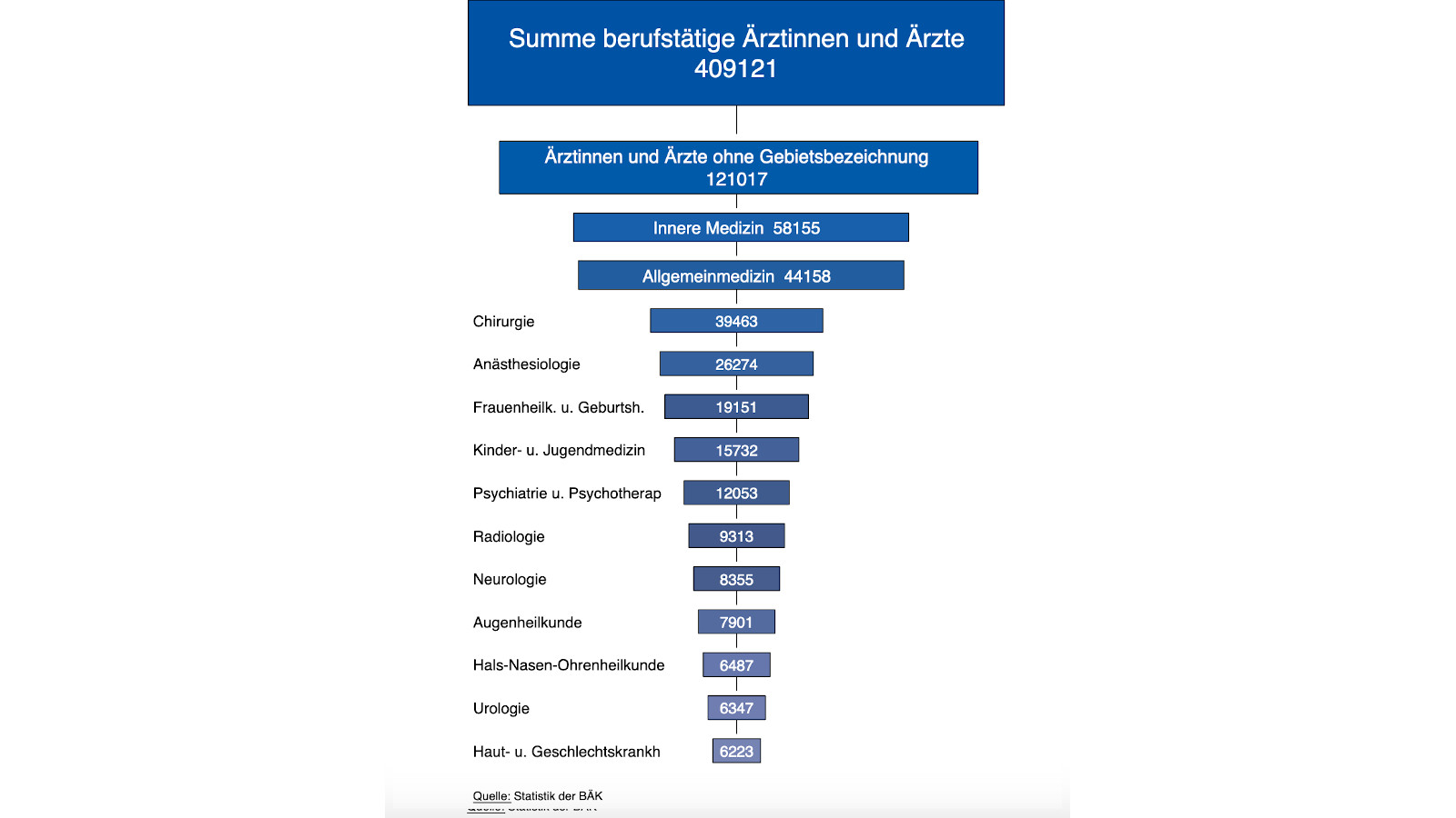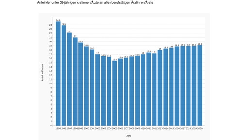 Die Zahl der jungen Ärzt:innen hat sich zuletzt stabilisiert.Grafik: BÄK
