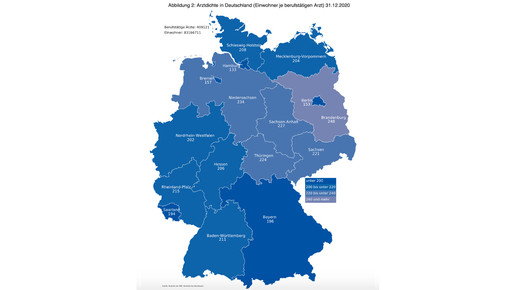 Die Arztdichte variiert je nach Bundesland.Grafik: BÄK