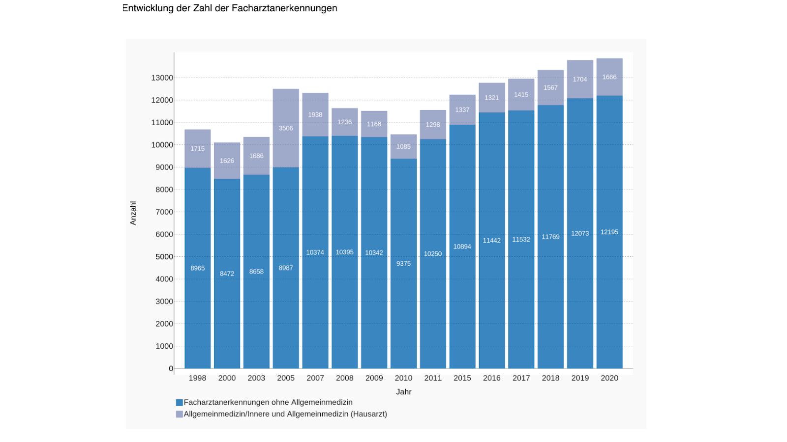 Die Zahl der Fachärzt:innen wächst.Grafik: BÄK
