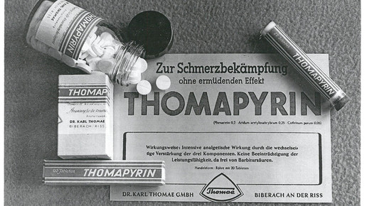 Thomapyrin, Deutschlands meistverkauftestes Kopfschmerzmittel, ist schon 70 Jahre alt. Entwickelt wurde der Klassiker 1946 als erstes rezeptfreies Arzneimittel von der Boehringer-Tochter Thomae. Von Anfang an waren zwei Schmerzmittel und ein Wirkverstärker enthalten. Seit 1971 ist die Kombination aus ASS, Paracetamol und Koffein am Markt. Diese Mischung machte Thomapyrin 1979 zum Marktführer. Ein Blick auf die Geschichte.