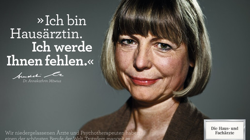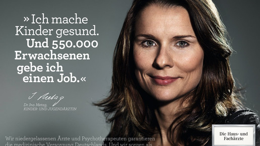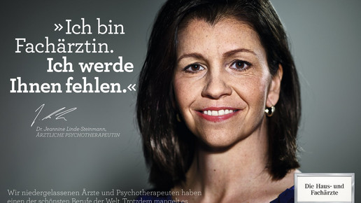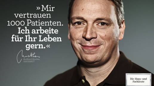15 Millionen Euro in fünf Jahren: Die Kassenärztliche Bundesvereinigung (KBV) fährt seit Frühjahr eine Mega-Kampagne, um das Image der rund 150.000 niedergelassenen Ärzte und Psychotherapeuten aufzupolieren. Auf Plakaten und City-Lights sind echte Mediziner zu sehen, die mit prägnanten Sätzen in Szene gesetzt werden. Nachdem in der ersten Runde wurden die Botschaften – pünktlich zum Wahlkampf – direkter.