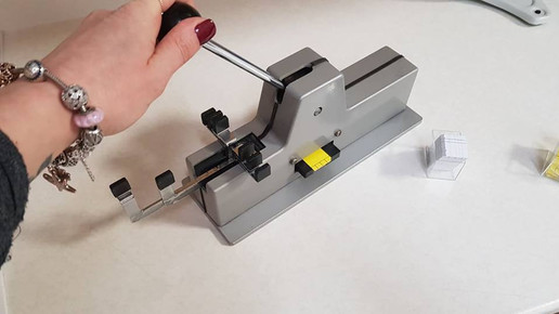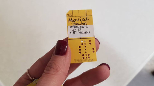 In die Maschine geben sie die PZN ein, die dann entsprechende Löcher stanzt.Foto: Hubertus-Apotheke