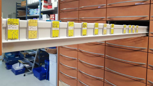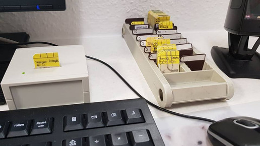 An dem System hat die Inhaberin nichts geändert. Die gelben Kärtchen gehören zum Alltag wie für andere der Kommissionierautomat. Foto: Hubertus-Apotheke