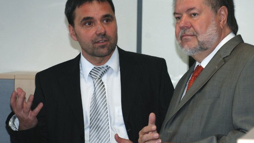 Sie hatte die Nachfolge von Kurt Beck angetreten (rechts, beim Firmenbesuch 2010 mit dem damaligen Rowa-Geschäftsführer Rudolf Wagner).Foto: Rowa