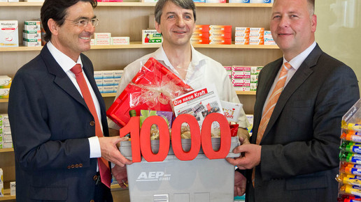 Sieben Monate nach dem Start hat der Pharmagroßhändler AEP den 1000. Kunden begrüßt. Martin Straulino, Inhaber der Neuen Storchen Apotheke in Baiersdorf, will dem Konzept eine Chance geben, auch weil er sich von seinem bisherigen Großhändler schlecht behandelt fühlt. Dr. Georg Pölzl, Vorstandschef der Österreichischen Post, ist überzeugt, dass AEP auf Dauer ein Erfolg werden wird.