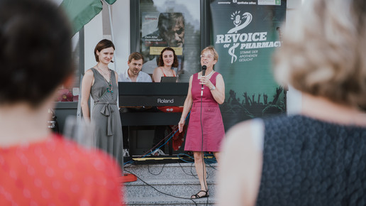 In der Mangfall-Apotheke trat sie wegen des guten Wetters draußen auf. Foto: APOTHEKE ADHOC
