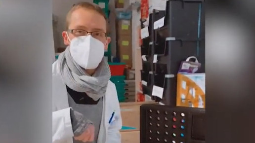 PTA Niklas Hess aus der Apotheke am Osttor in Beckum zeigt, wie man ein Transportbehältnis für die Vials des Corona-Impfstoffes von Biontech/Pfizer schnell selbst herstellen kann.