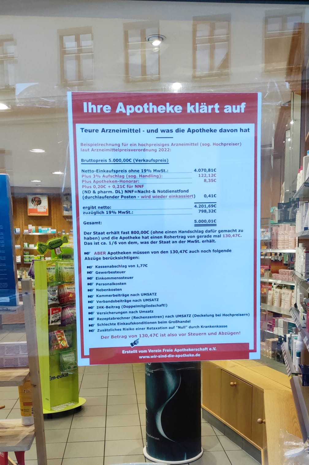 Ihre Apotheke bleibt ebenfalls geschlossen – auch als Unterstützung aller Protestierenden im Gesundheitswesen.Foto: Linda Apotheke in der Nordvorstadt