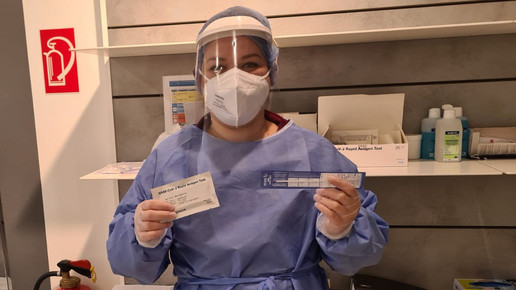 PTA Lumturije Bajramaj-Hasanaj testet seit einigen Wochen Selbstzahler auf Covid-19. Jetzt geht sie auch in Kindergärten und nimmt dort bei Erzieher*innen Abstriche.