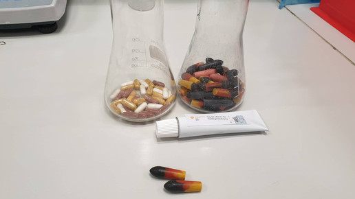 Zäpfchen gießen mal anders: An Station Nummer fünf, wurden bunte Schüler Zäpfchen vom PTA-Oberkurs gegossen. Ähnlichkeiten mit Länderflaggen sind natürlich rein zufällig... Foto: Bernd-Blindow-Schule, Mannheim