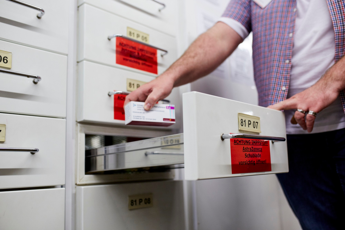 Vom Bundeslager in die Apotheke: Der Privatgroßhändler Krieger aus Koblenz öffnet sein Lager und zeigt, wie die sensiblen Covid-19-Impfstoffe händisch kommissioniert werden.