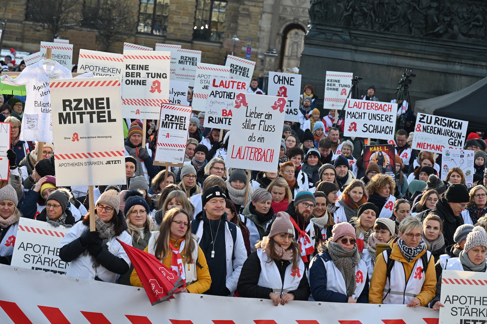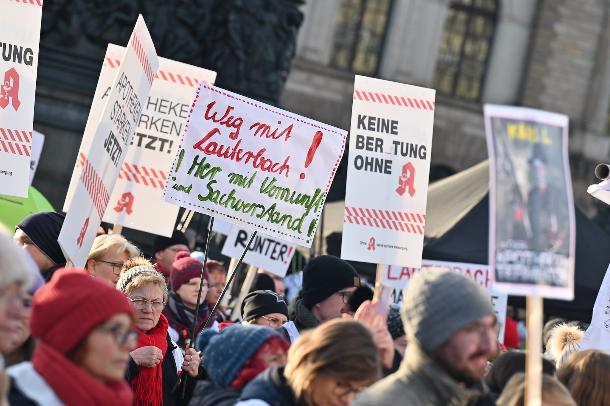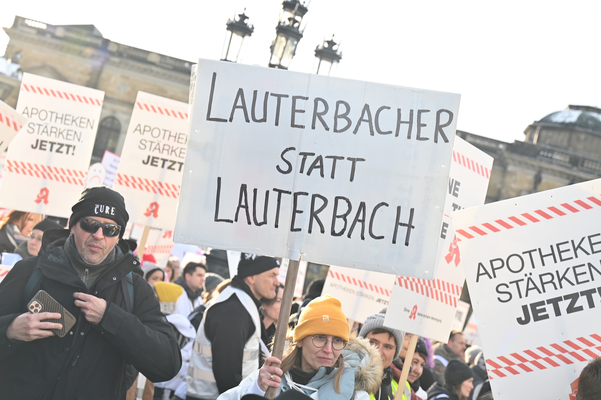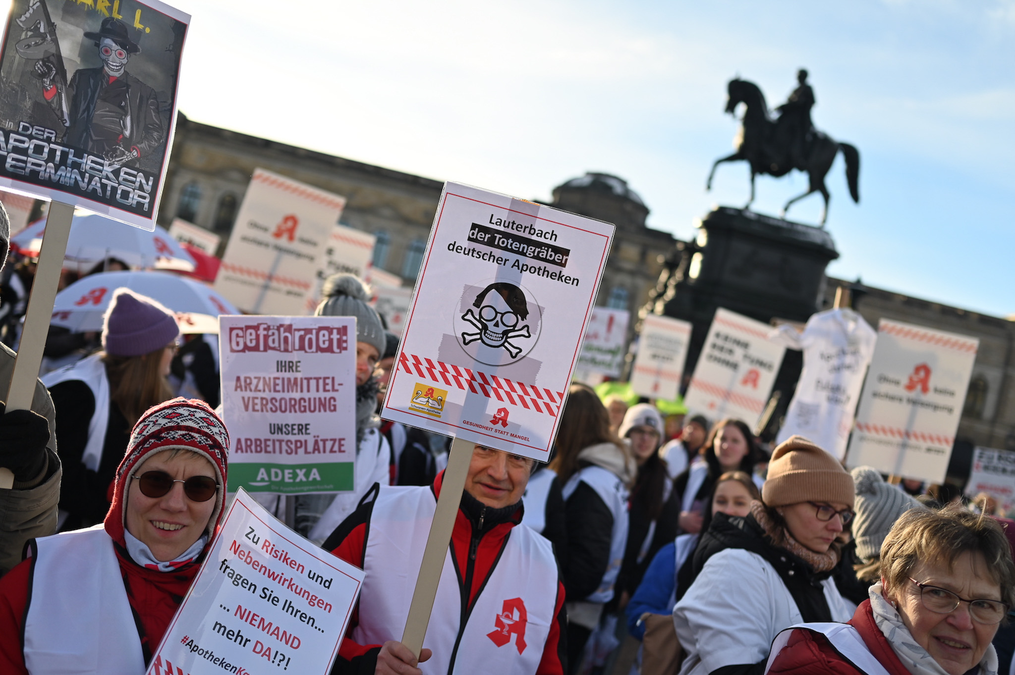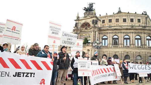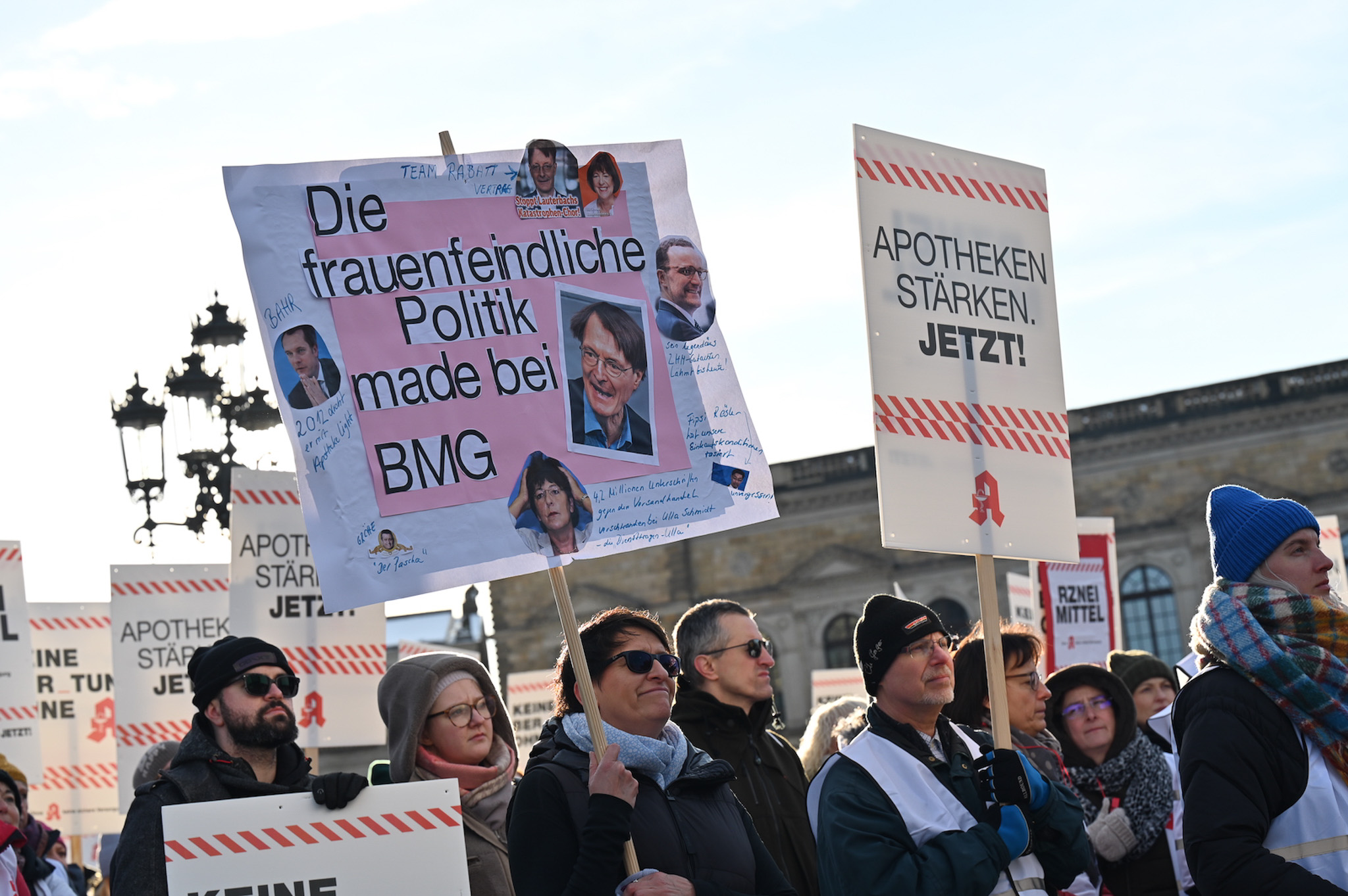 Bei den Protesttagen der Apothekenteams hatte der Ärger ein Gesicht – das von Bundesgesundheitsminister Karl Lauterbach (SPD). Der Protesttag in Dresden in Bildern.