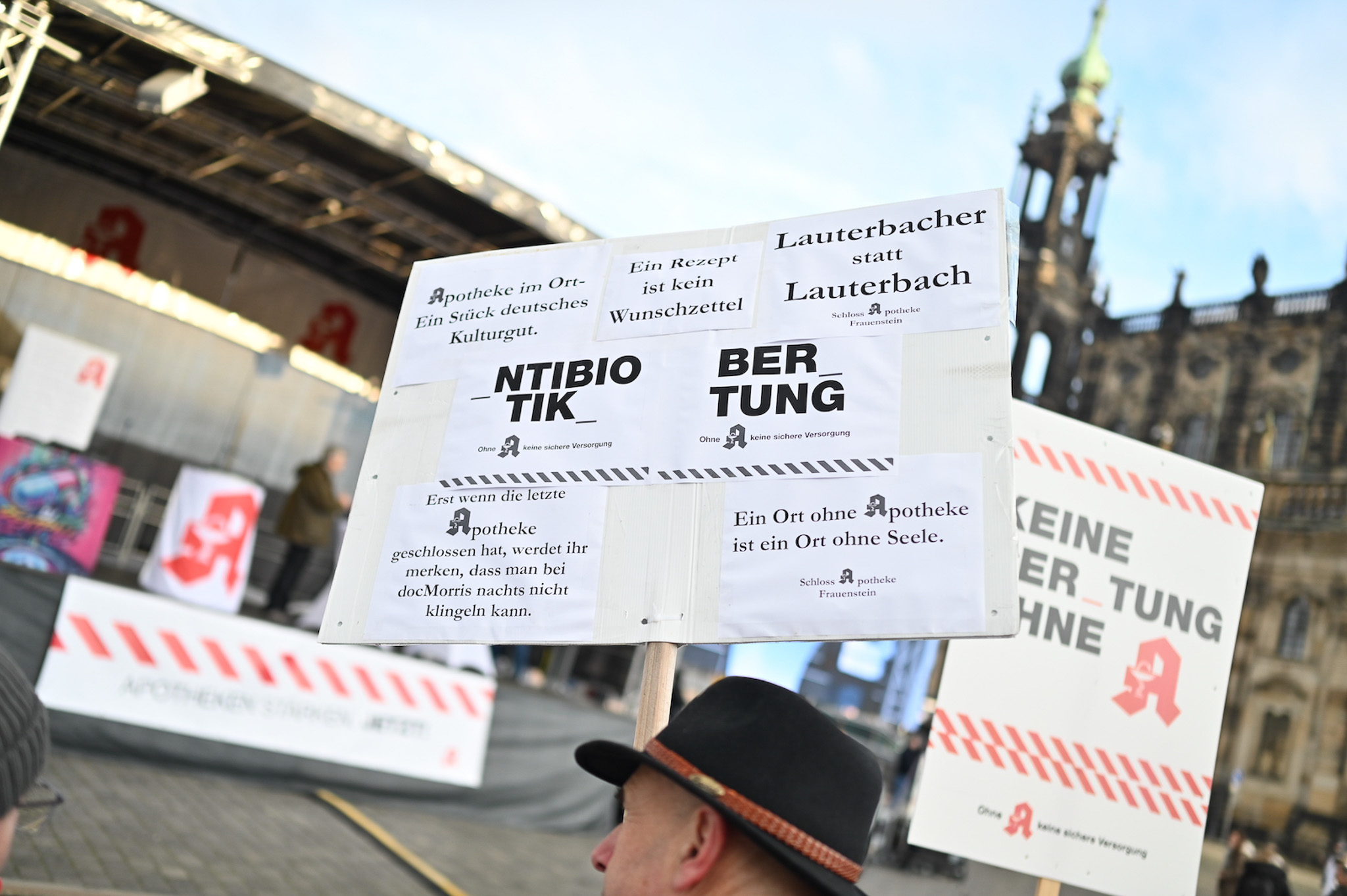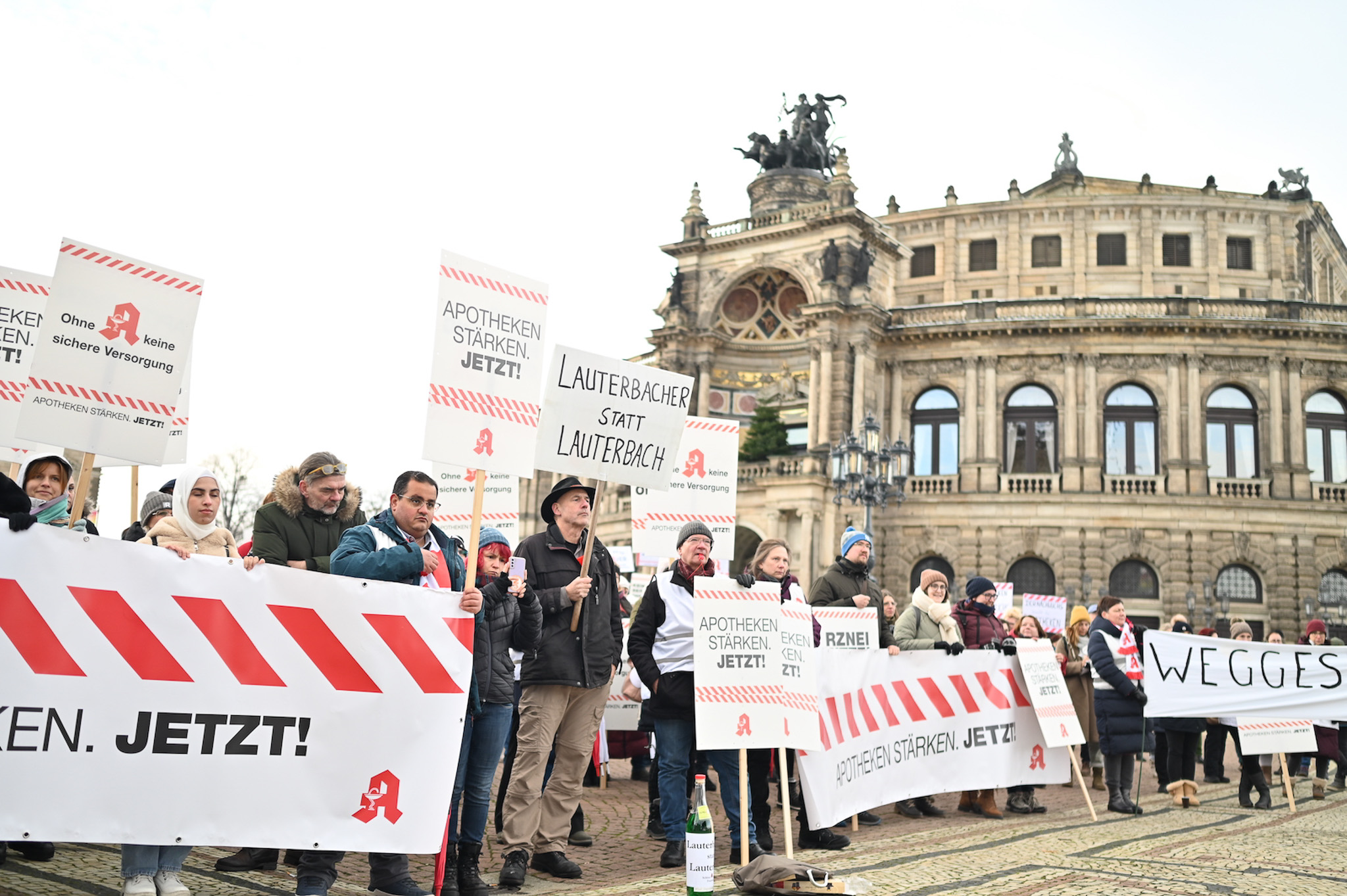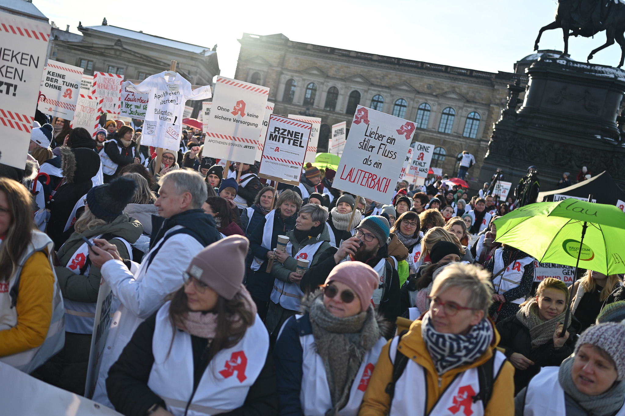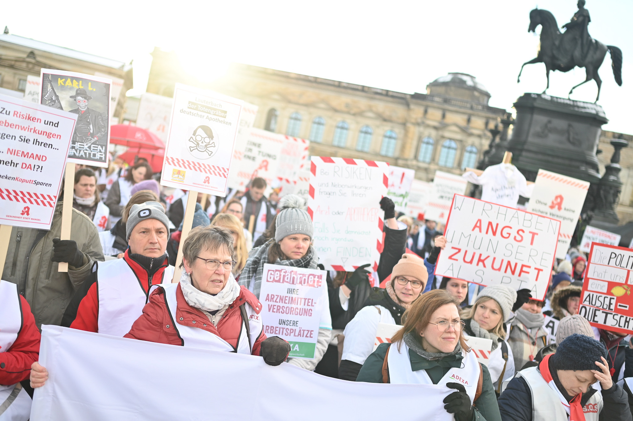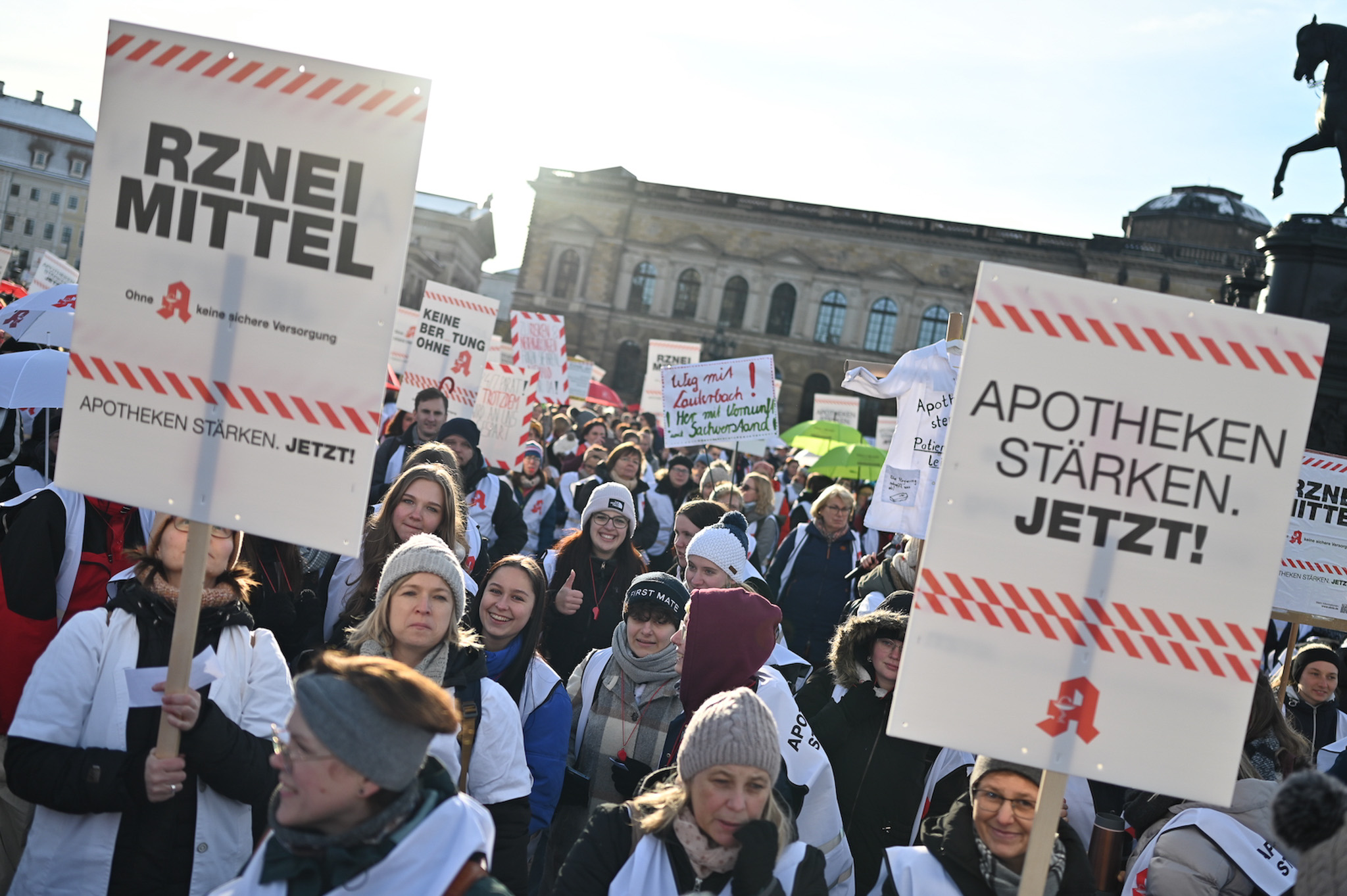 Bei den Protesttagen der Apothekenteams hatte der Ärger ein Gesicht – das von Bundesgesundheitsminister Karl Lauterbach (SPD). Der Protesttag in Dresden in Bildern.