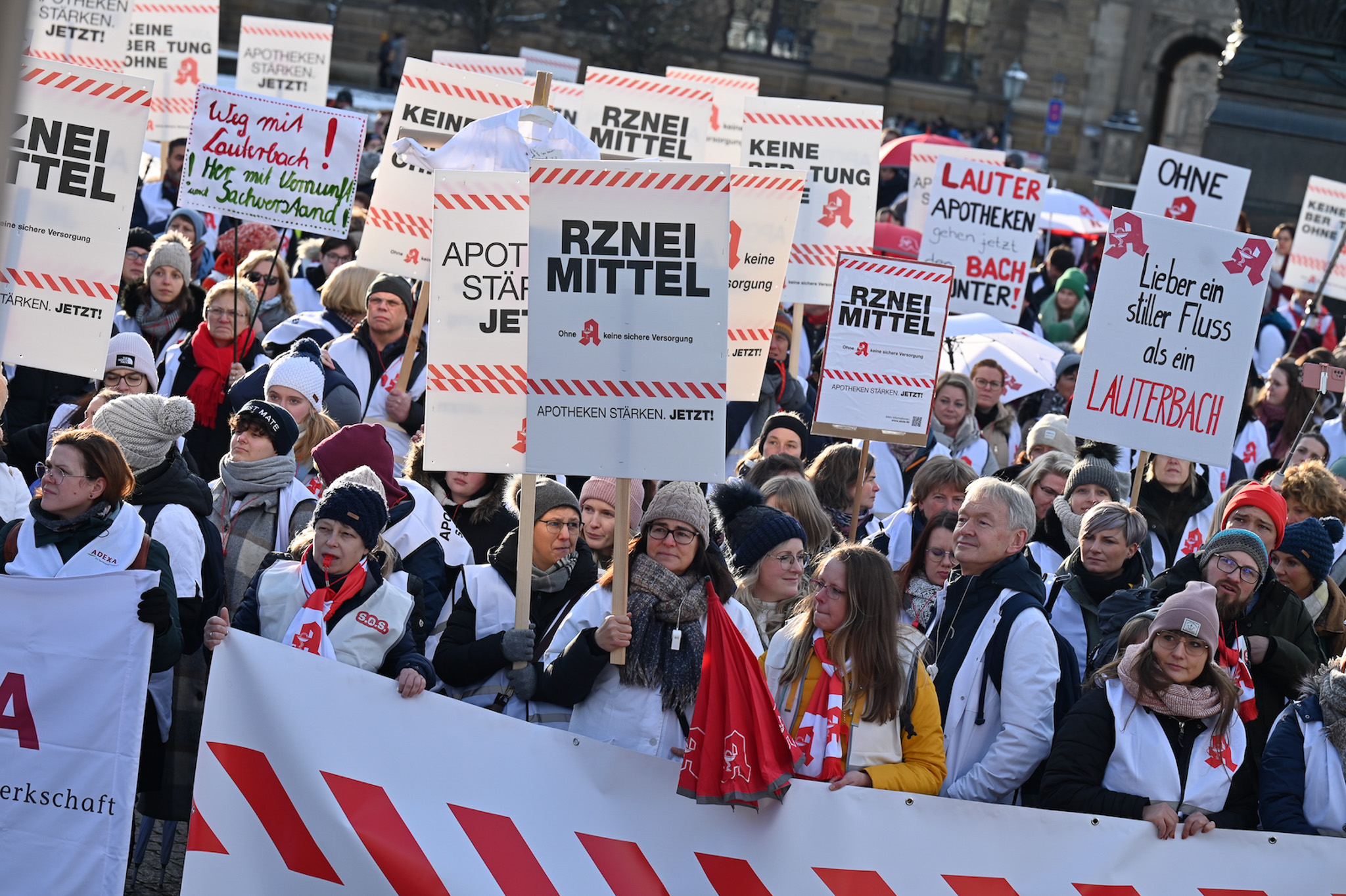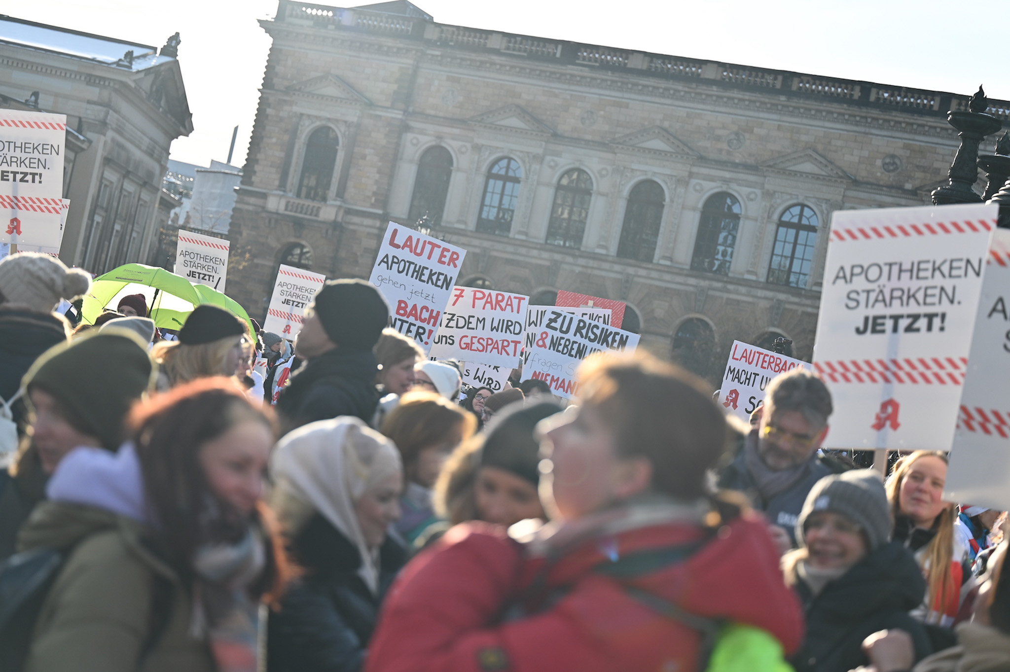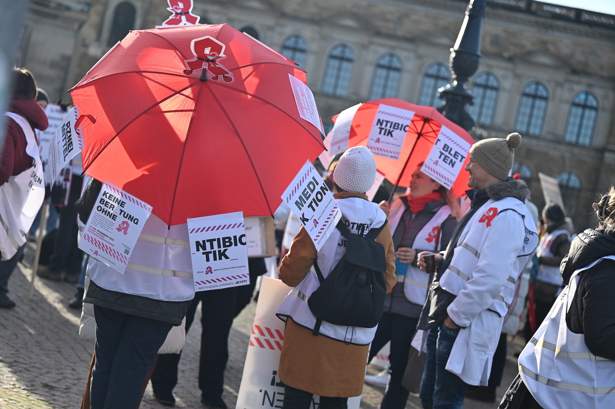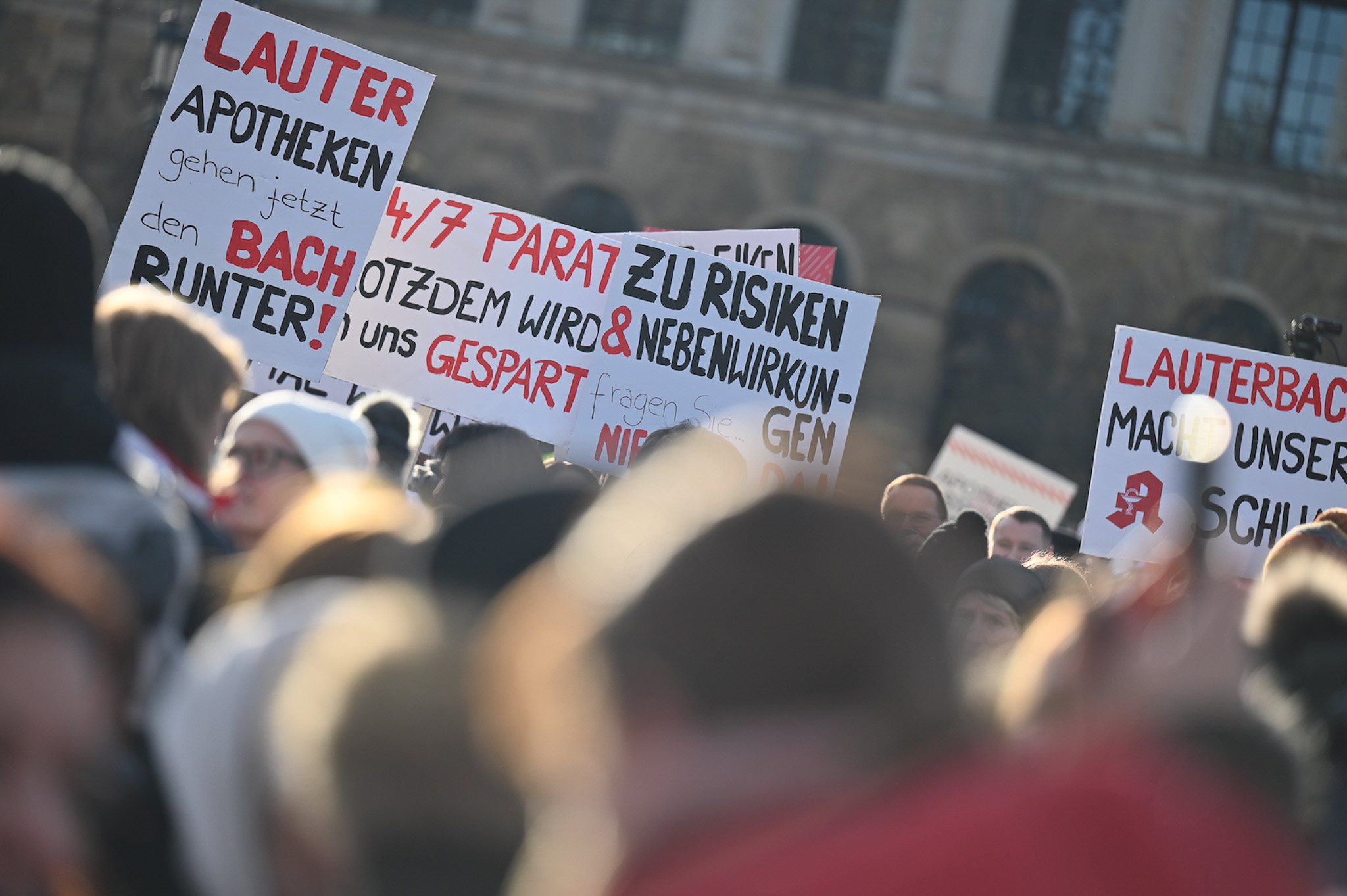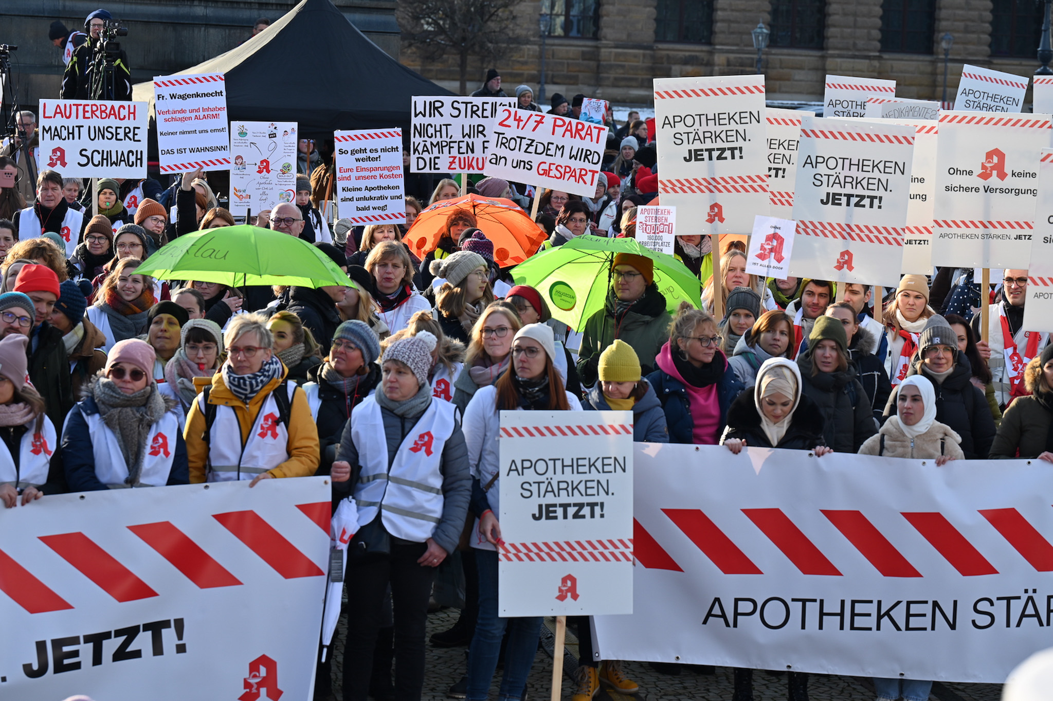 Bei den Protesttagen der Apothekenteams hatte der Ärger ein Gesicht – das von Bundesgesundheitsminister Karl Lauterbach (SPD). Der Protesttag in Dresden in Bildern.