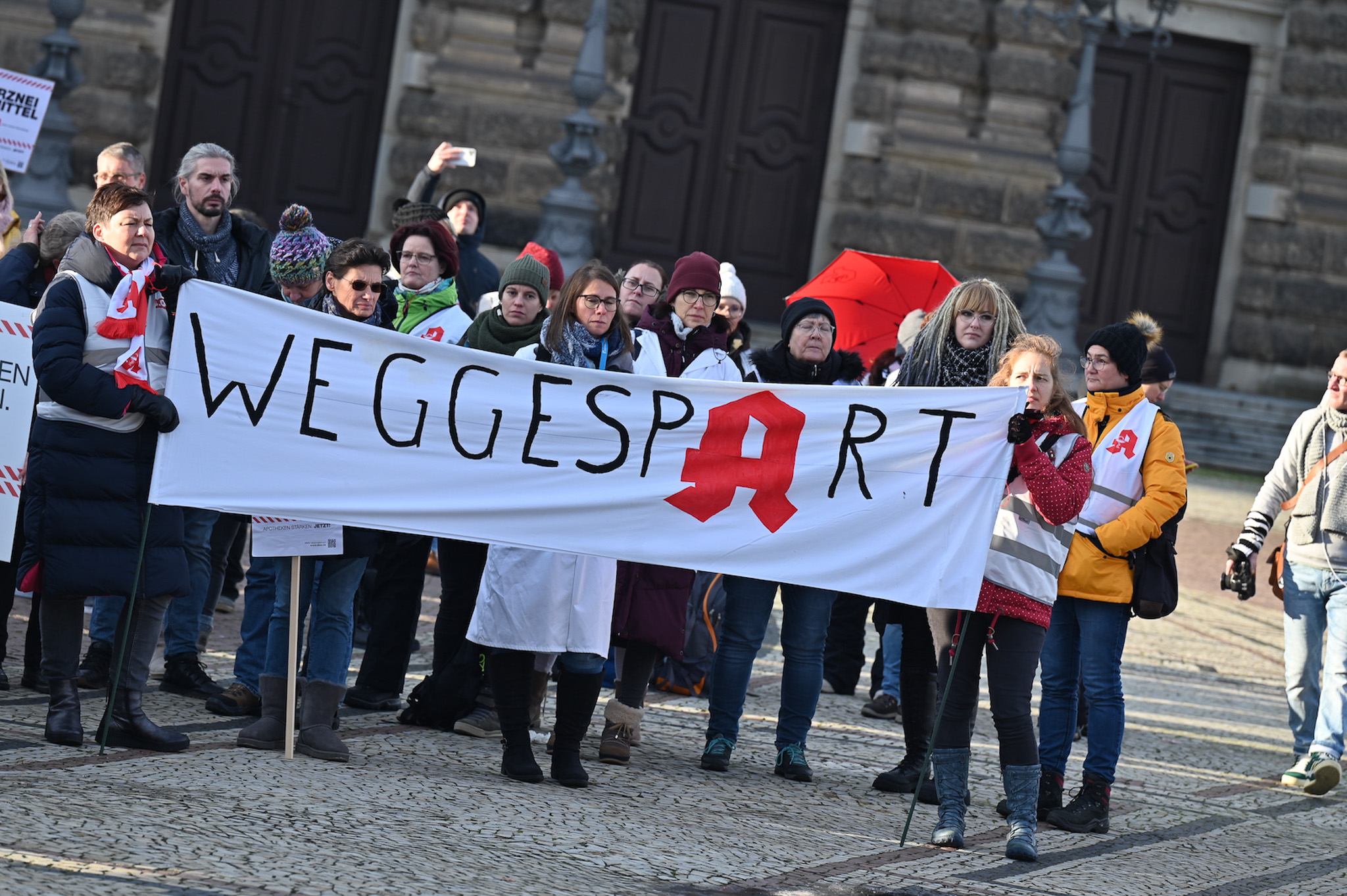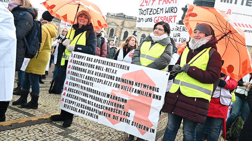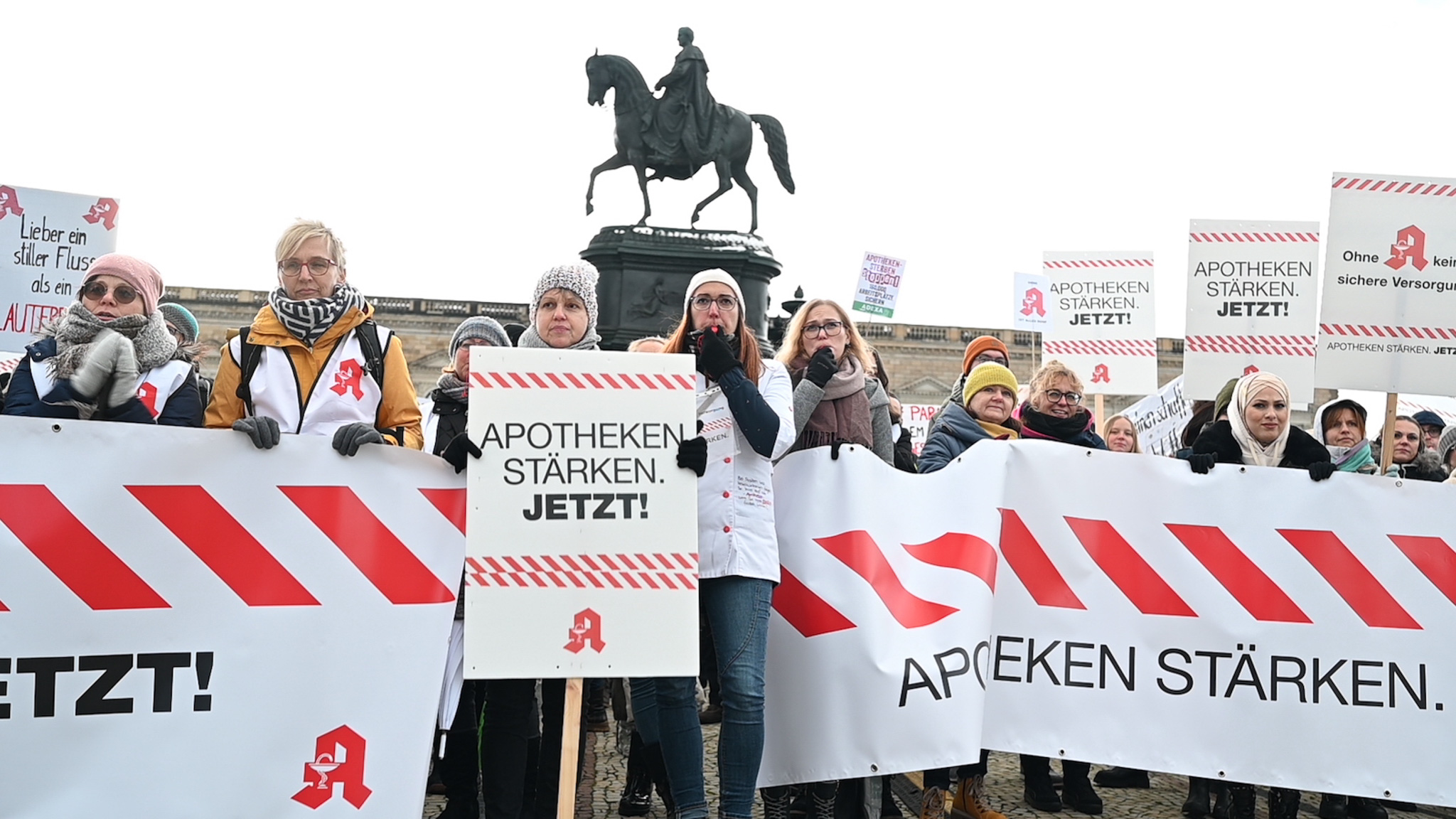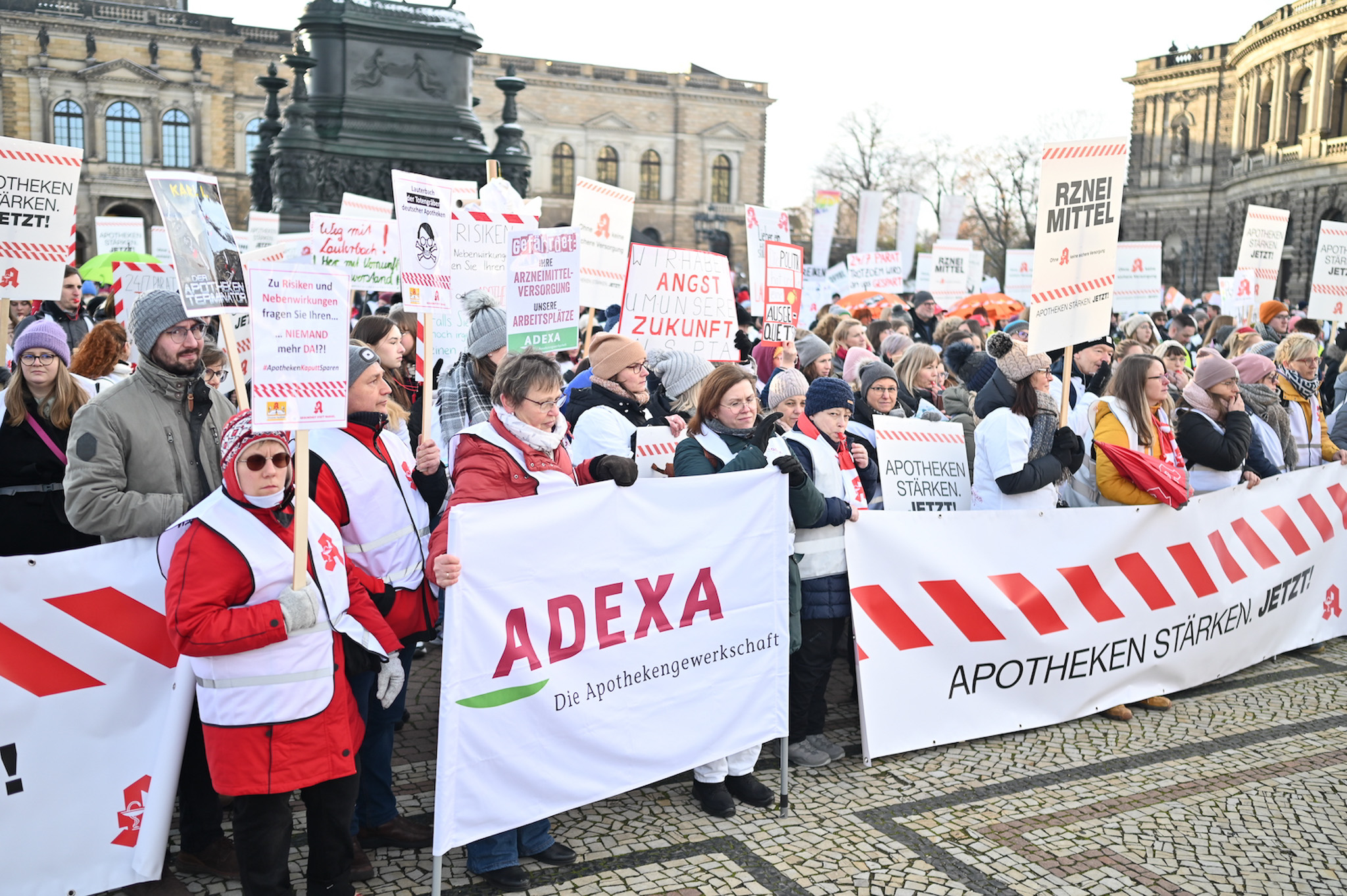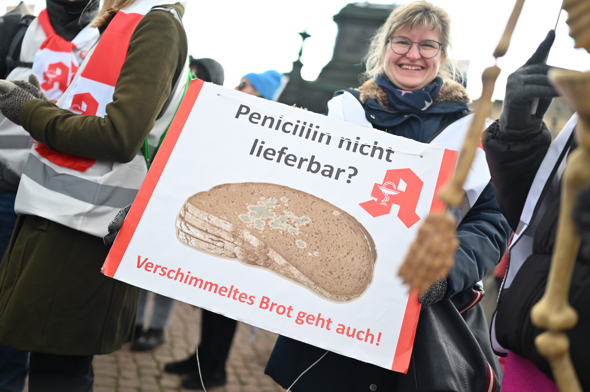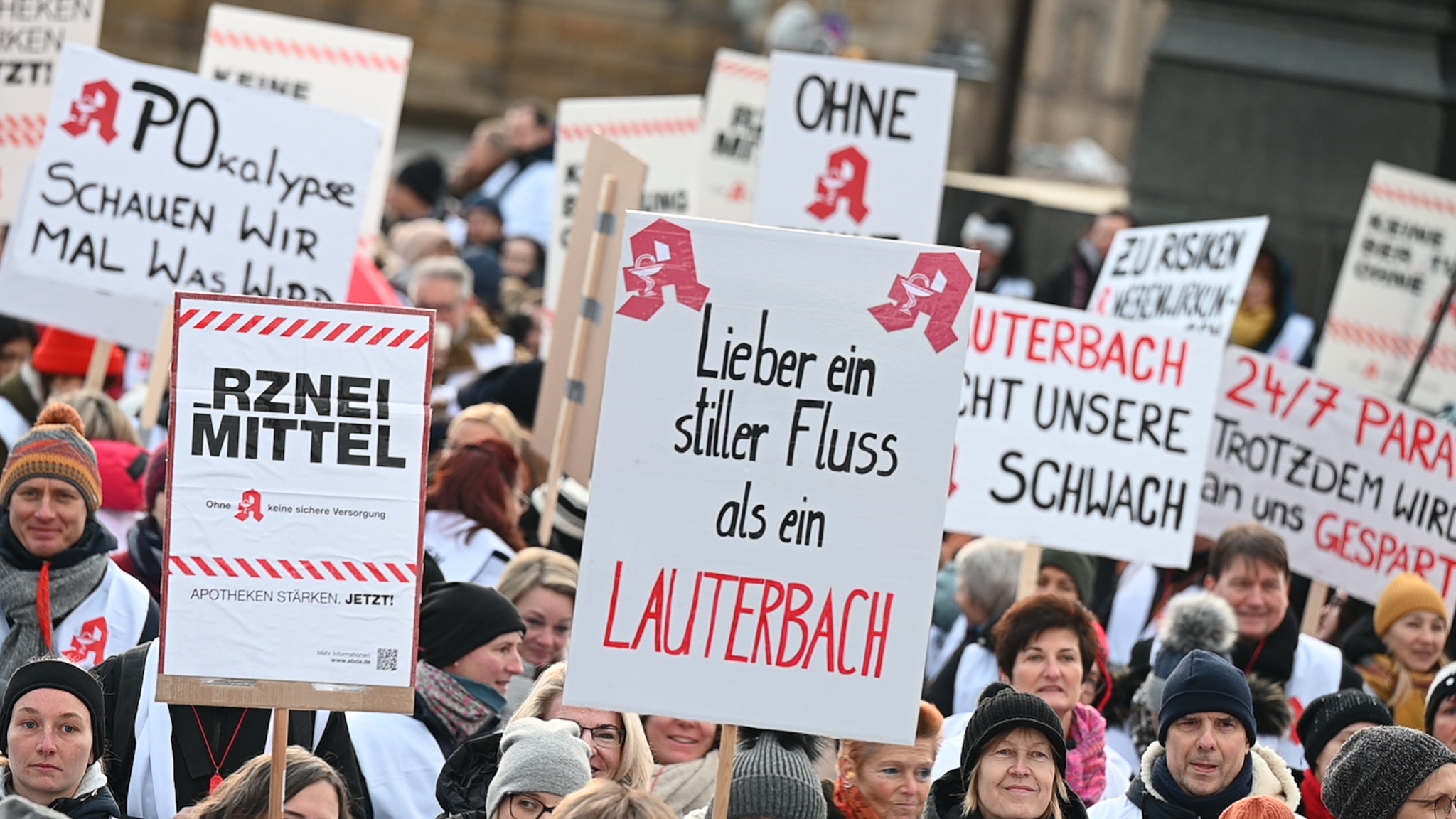 Bei den Protesttagen der Apothekenteams hatte der Ärger ein Gesicht – das von Bundesgesundheitsminister Karl Lauterbach (SPD). Der Protesttag in Dresden in Bildern.