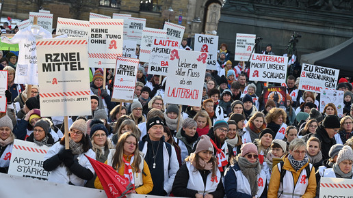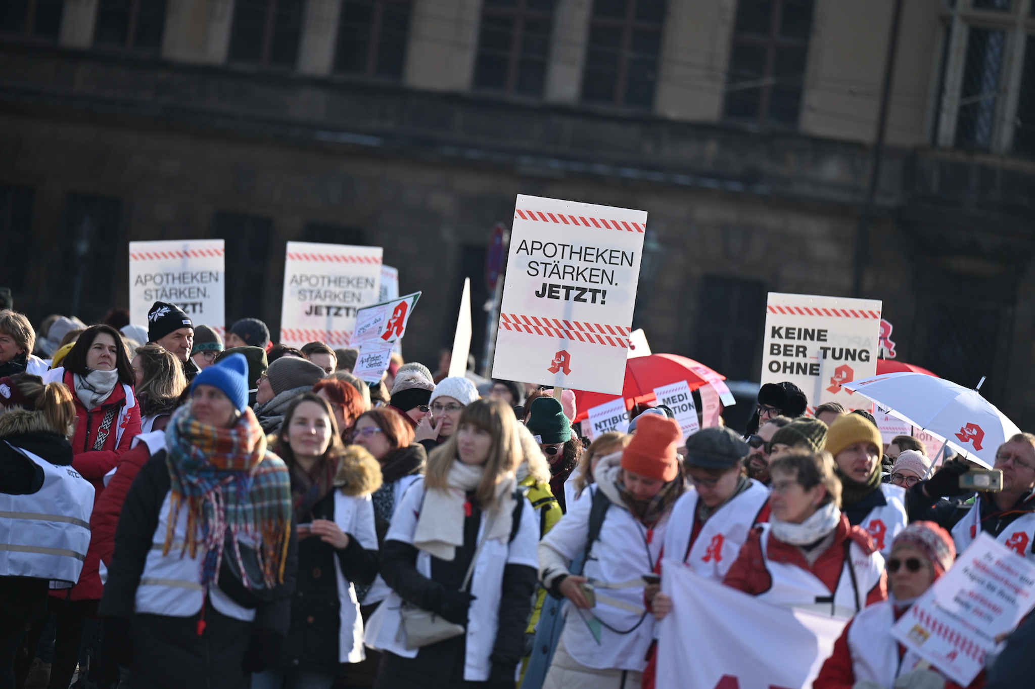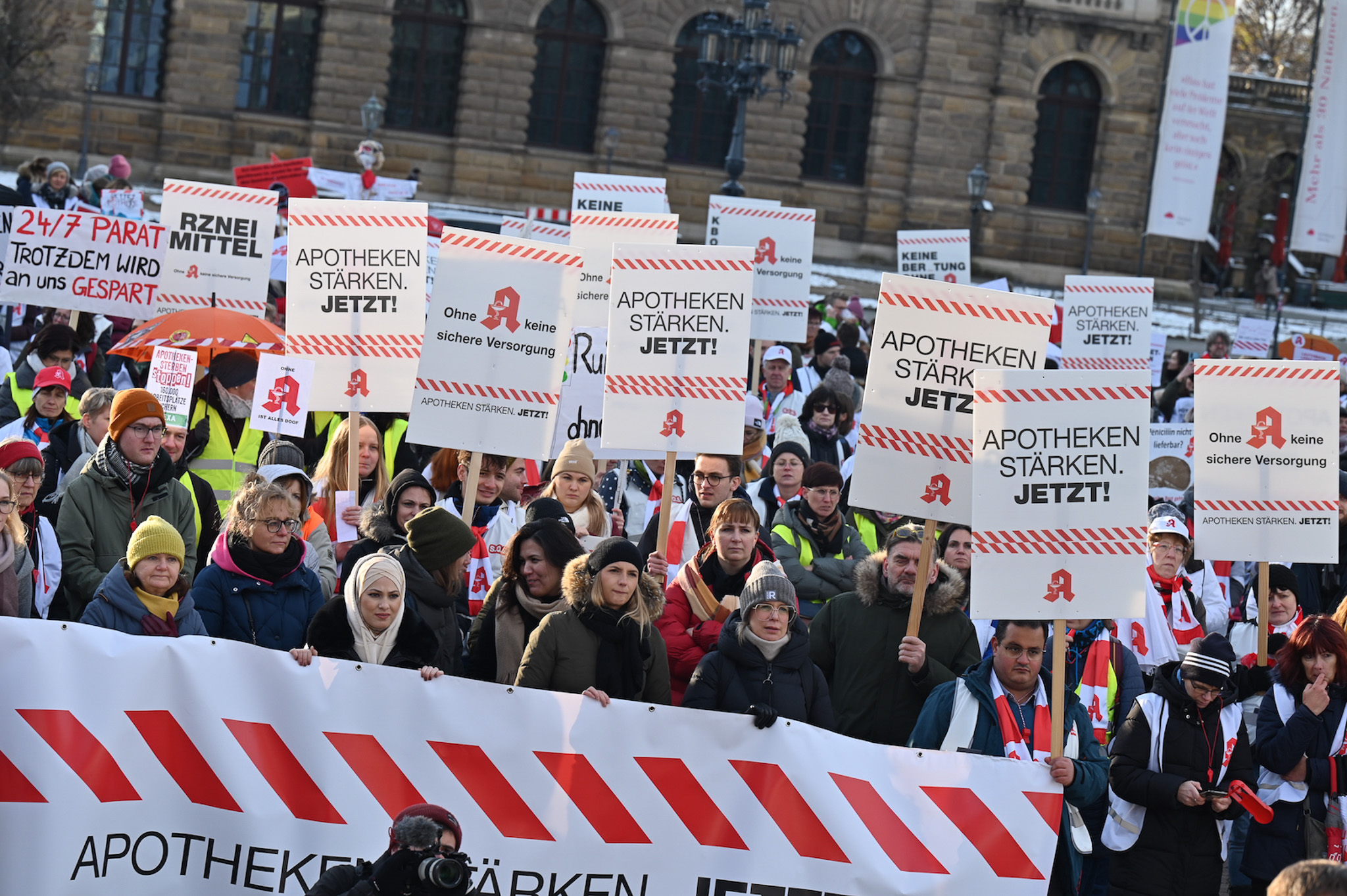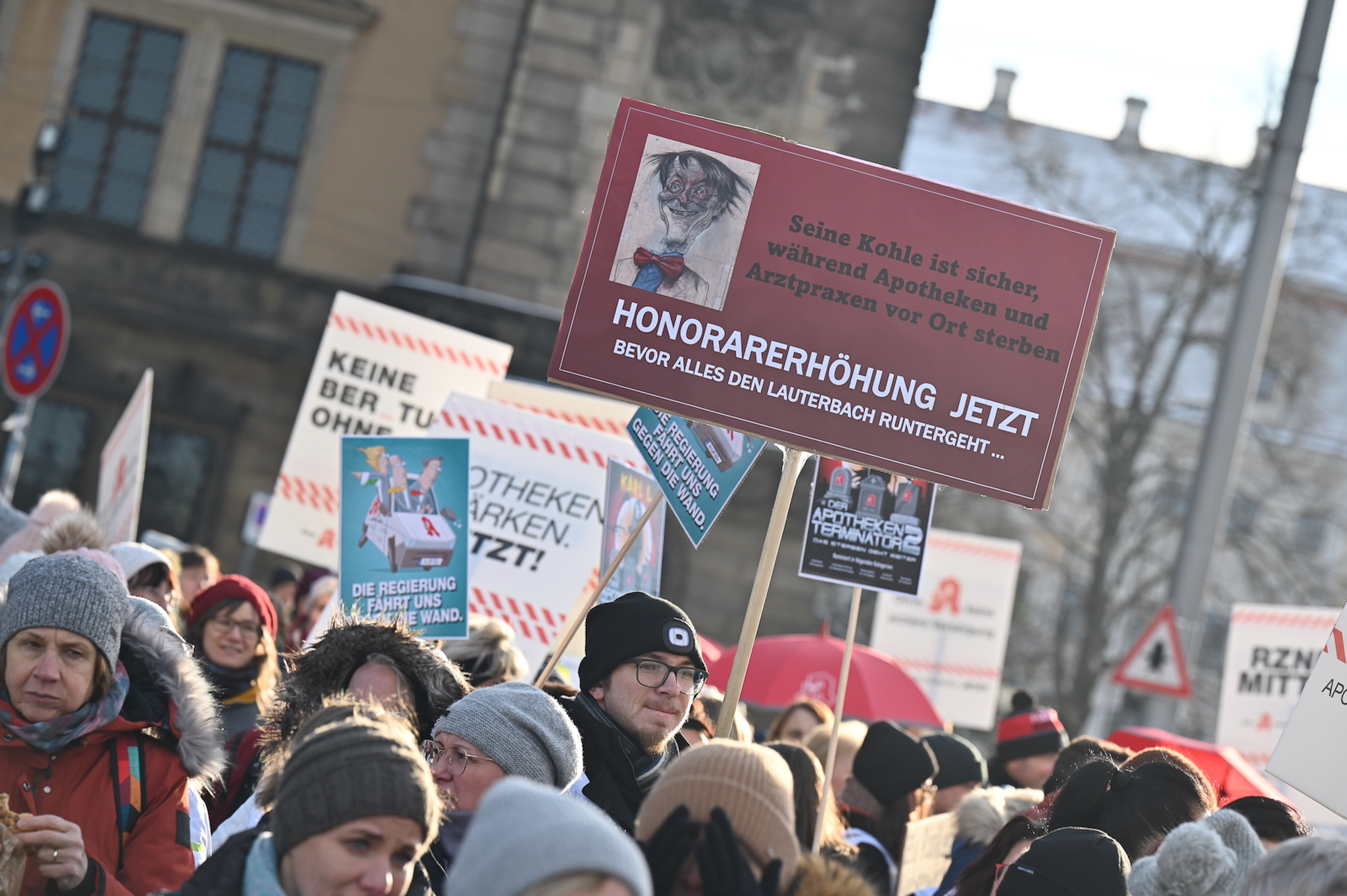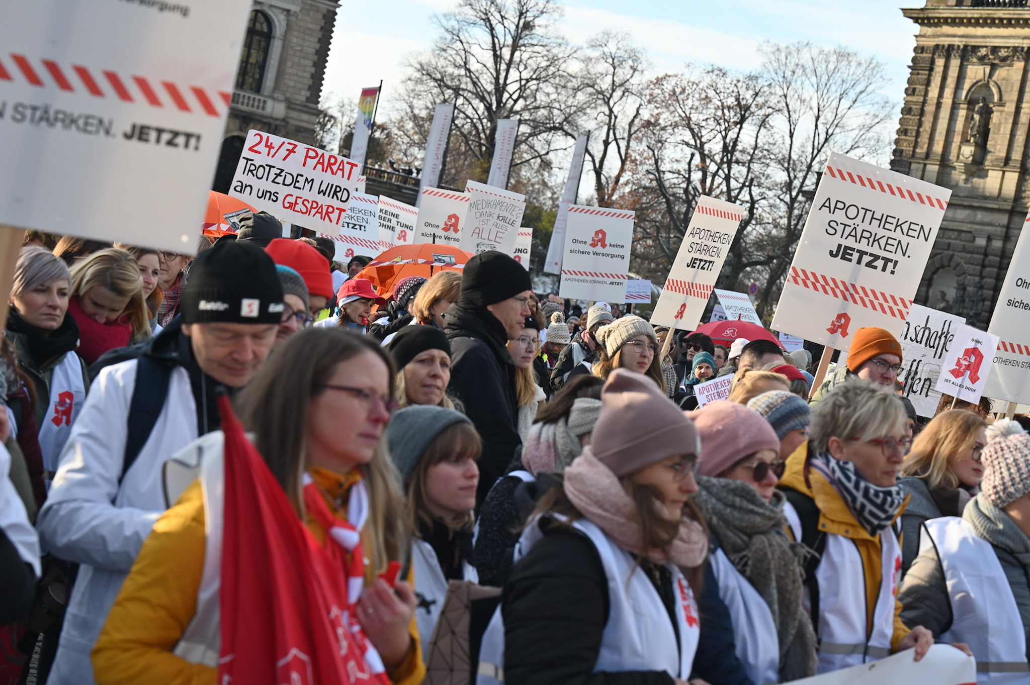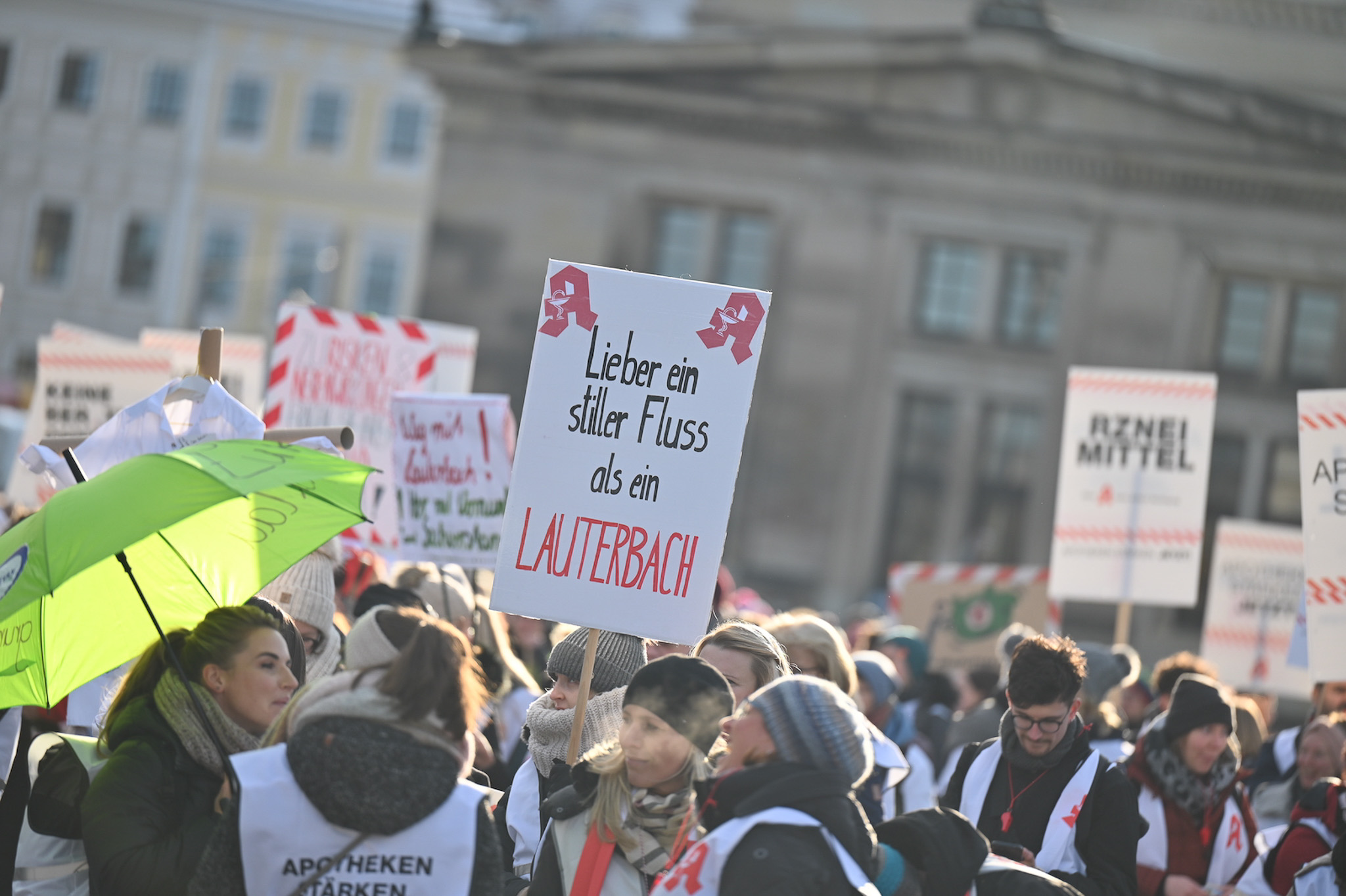 Bei den Protesttagen der Apothekenteams hatte der Ärger ein Gesicht – das von Bundesgesundheitsminister Karl Lauterbach (SPD). Der Protesttag in Dresden in Bildern.