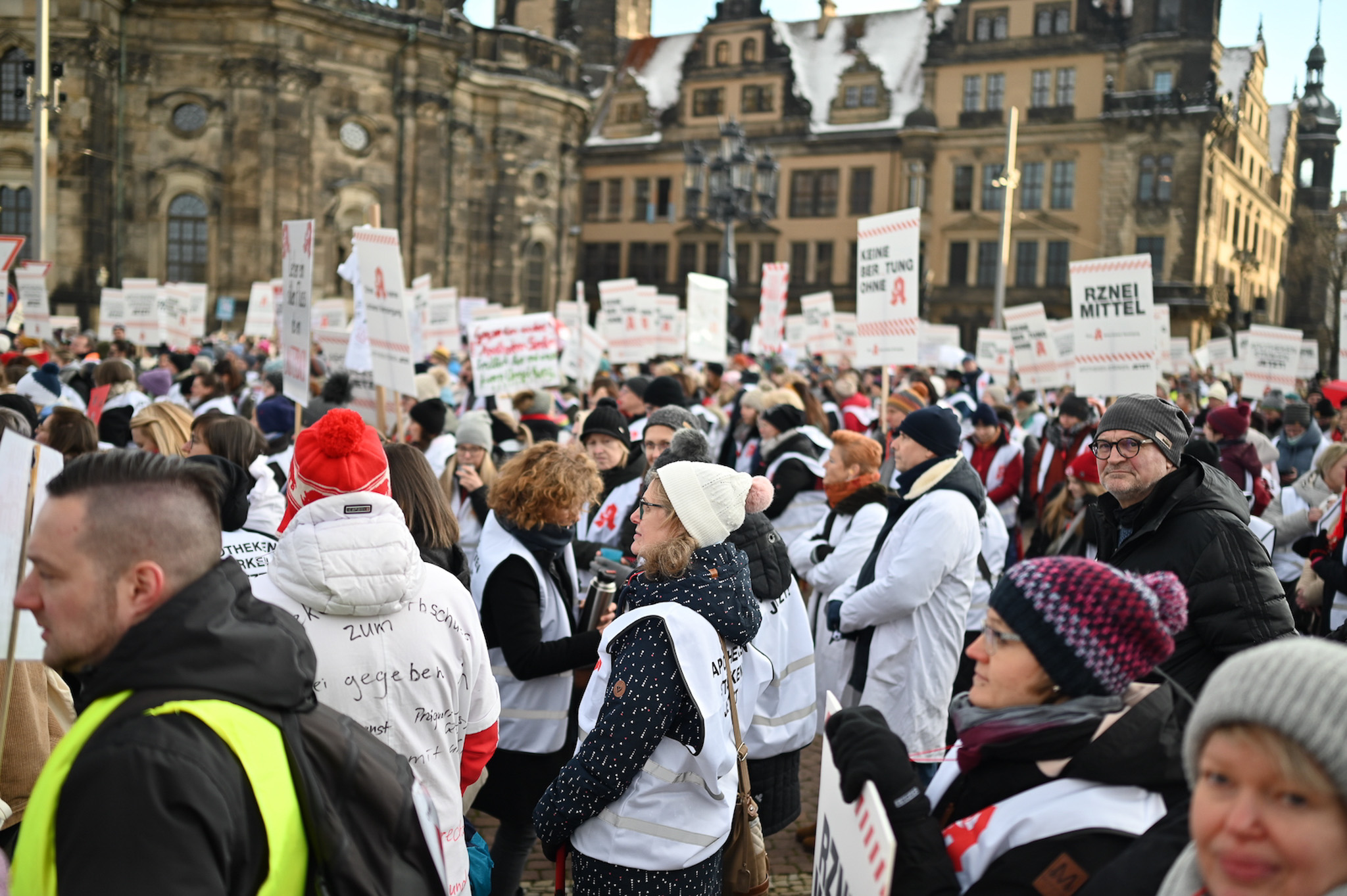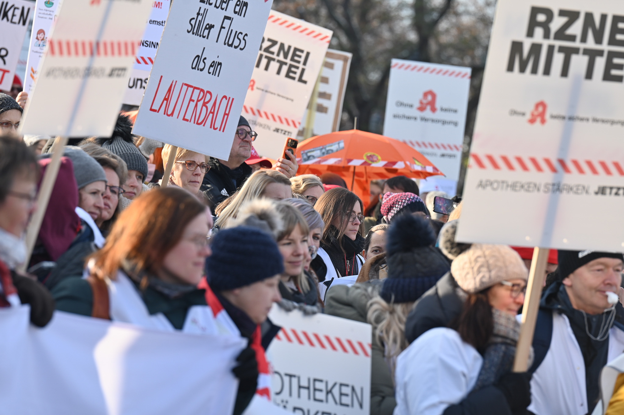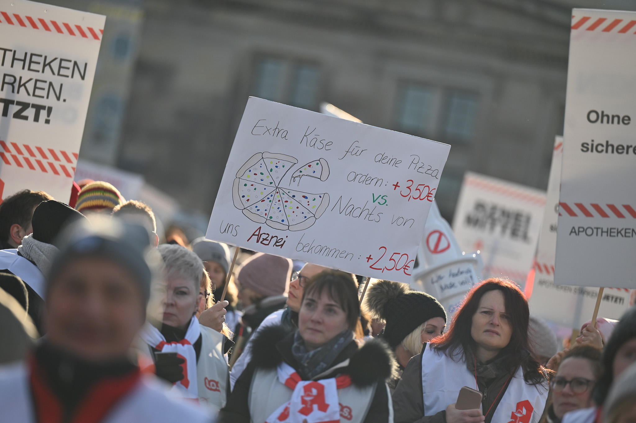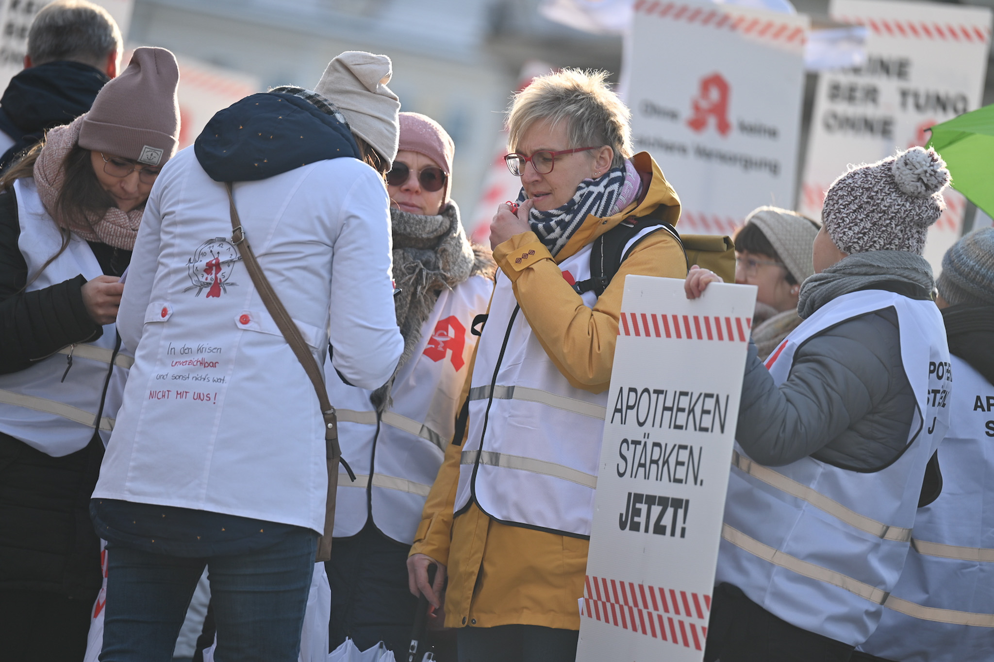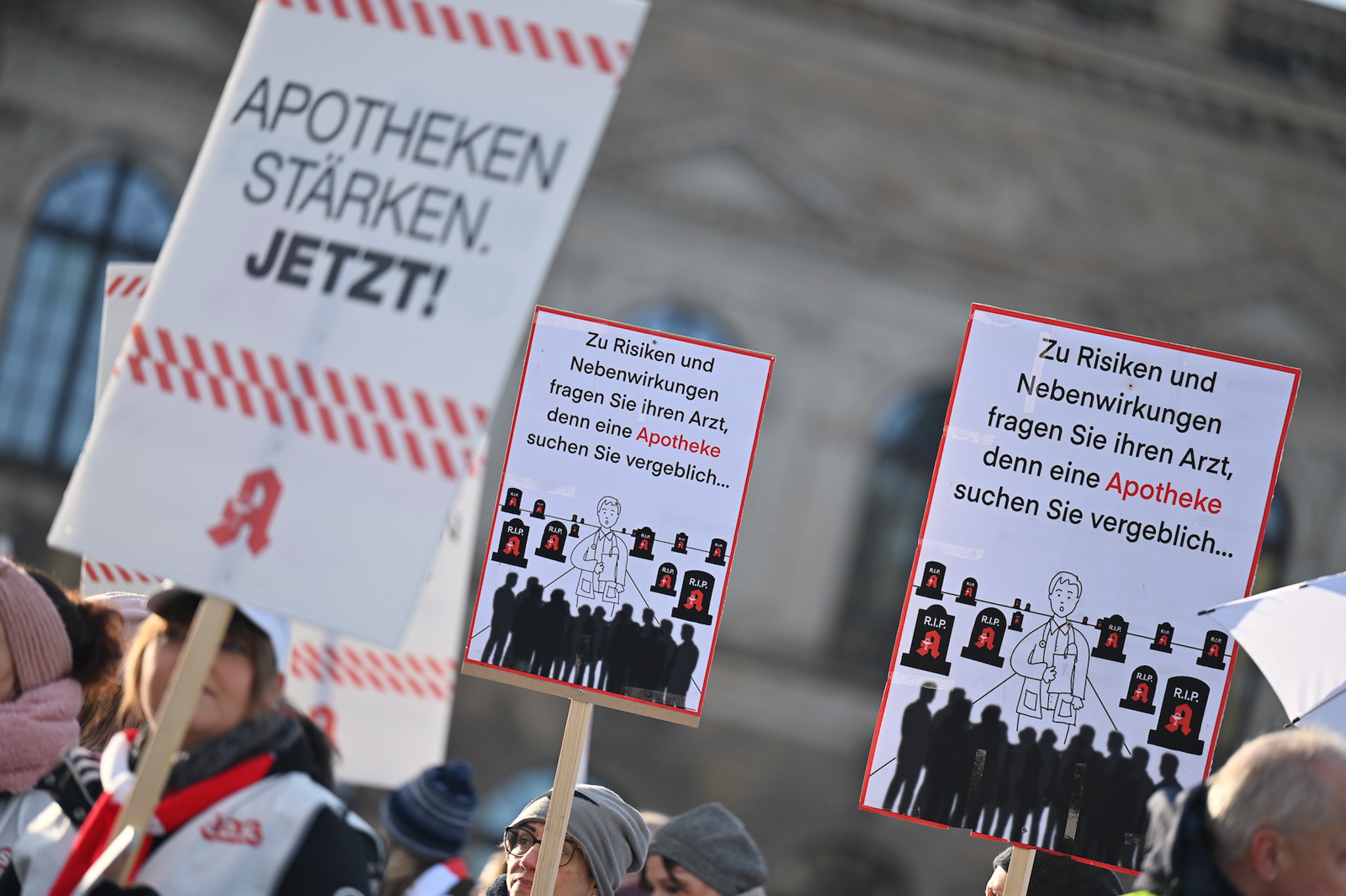 Bei den Protesttagen der Apothekenteams hatte der Ärger ein Gesicht – das von Bundesgesundheitsminister Karl Lauterbach (SPD). Der Protesttag in Dresden in Bildern.
