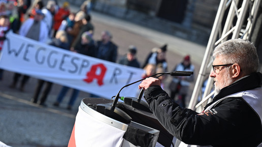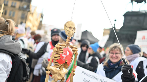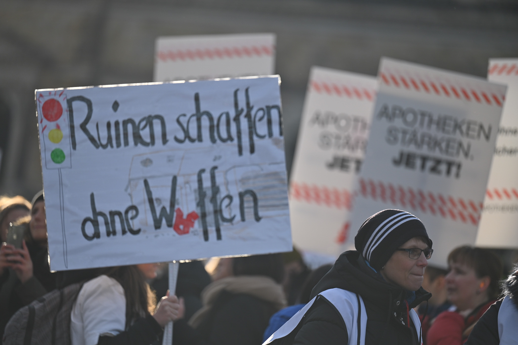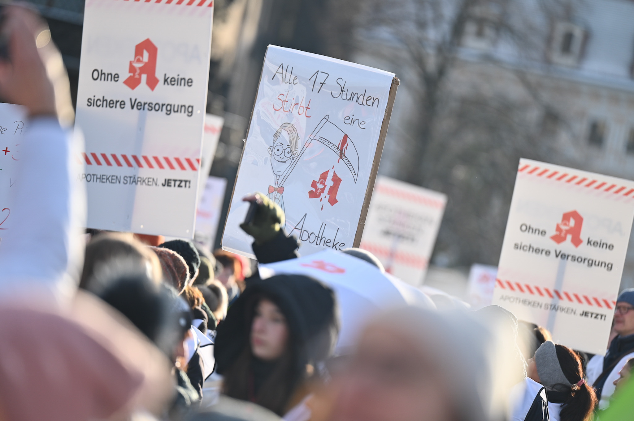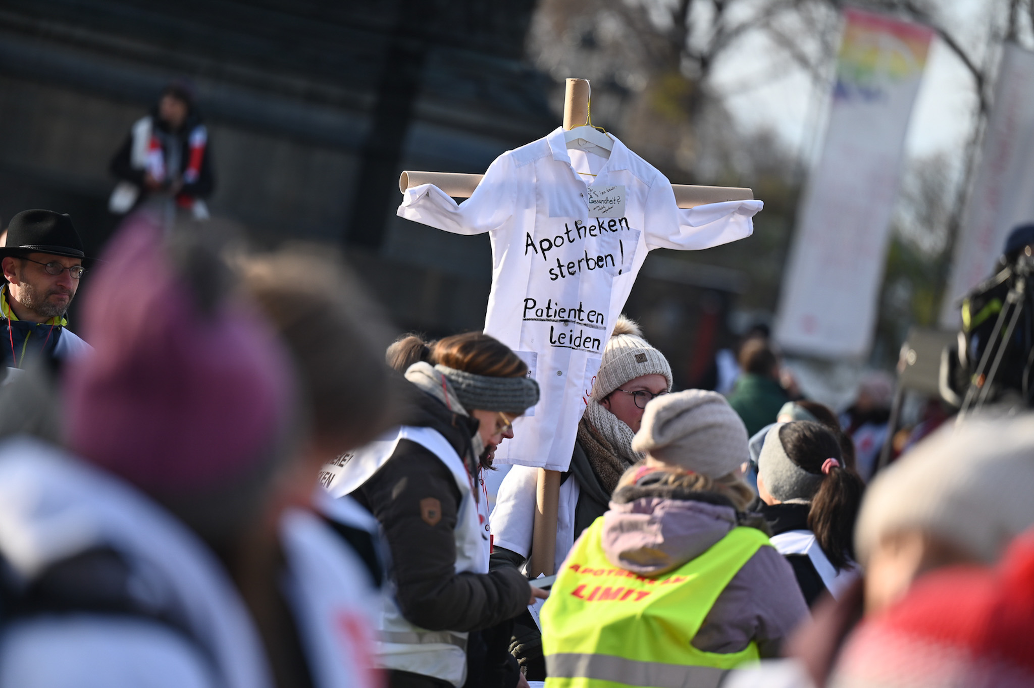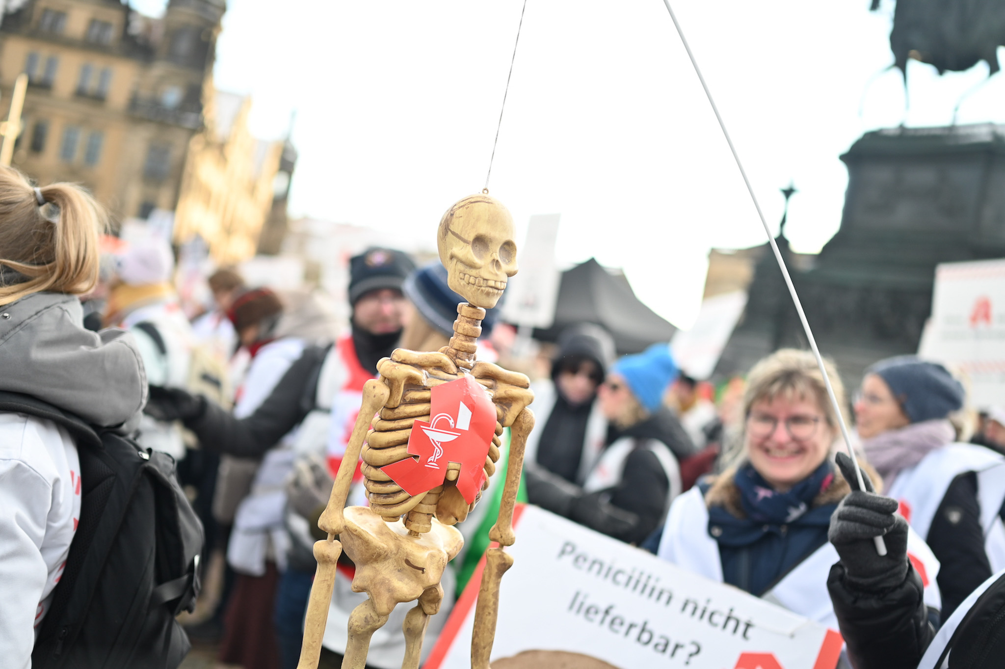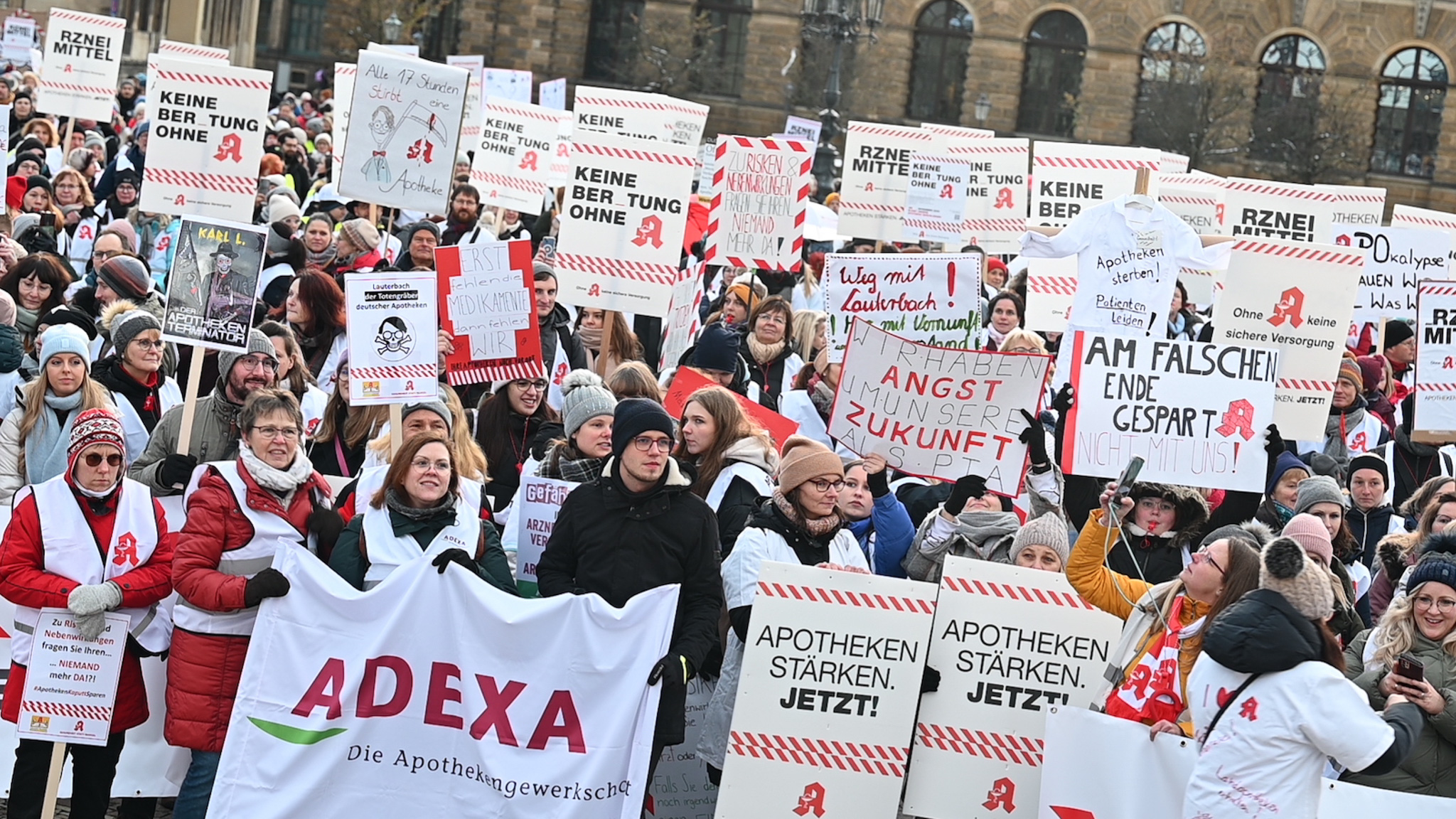Bei den Protesttagen der Apothekenteams hatte der Ärger ein Gesicht – das von Bundesgesundheitsminister Karl Lauterbach (SPD). Der Protesttag in Dresden in Bildern.