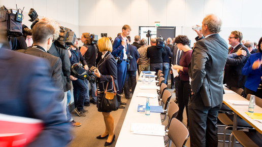 Am Dienstag trafen die neuen Fraktionen erstmals zusammen, entsprechend groß war das Medieninteresse.Foto: Andreas Domma