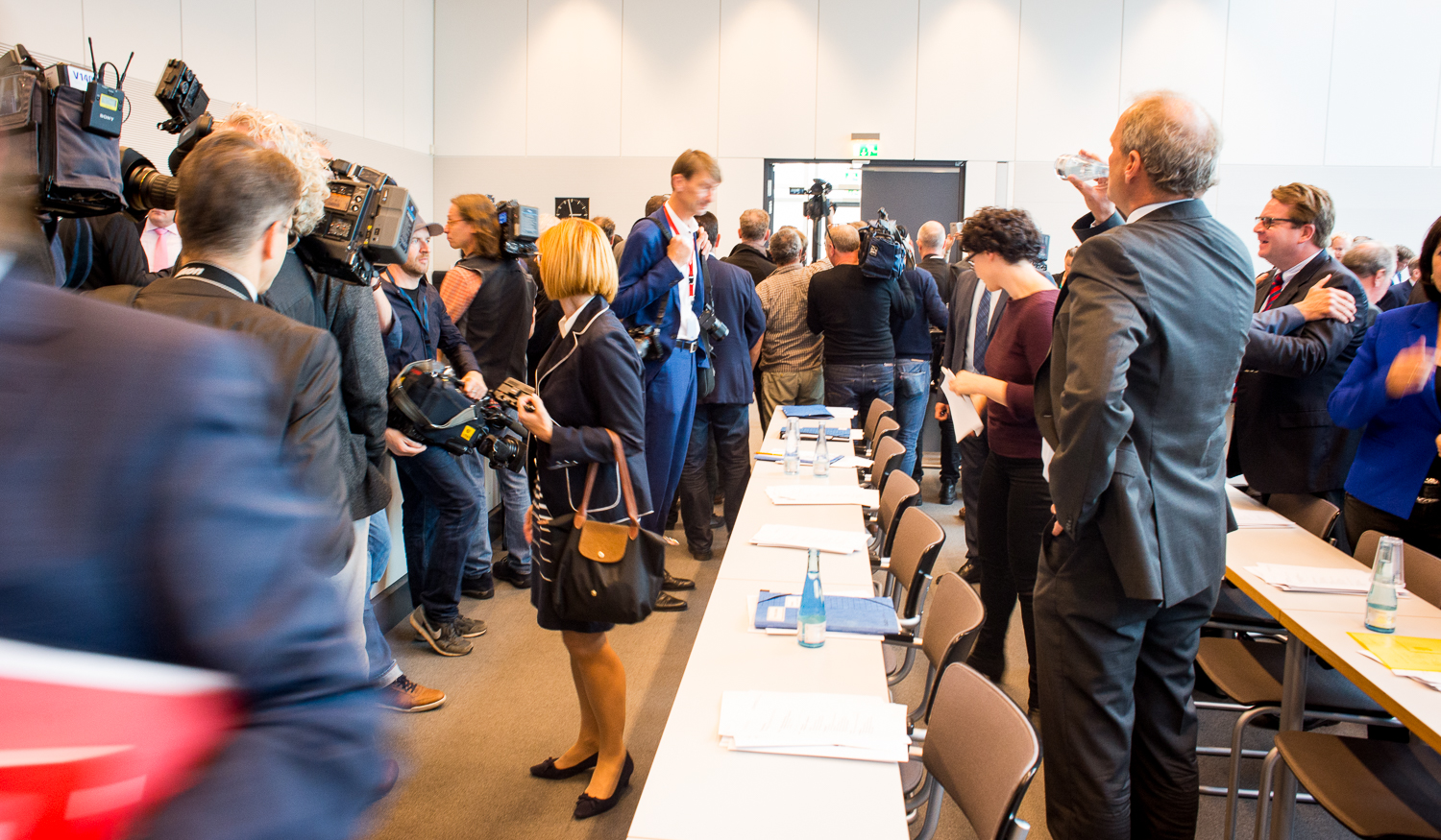Der Pressetross wartet auf die Geschlagenen.Foto: Andreas Domma