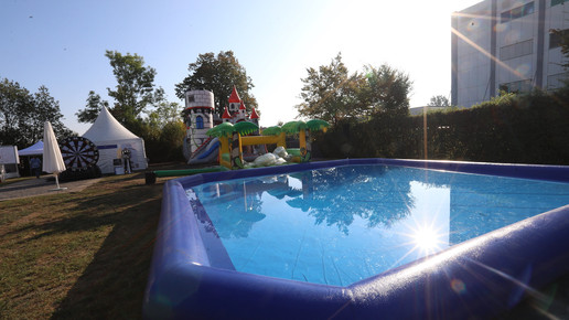 Für die Kinder wurde passend zur letzten großen Hitzewelle ein großzügig dimensioniertes Planschbecken aufgestellt.Foto: Dr. Wolff