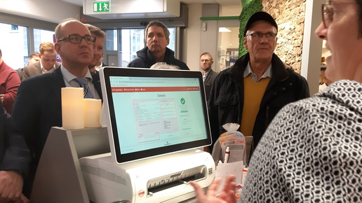Anschließend erklärte die Inhaberin den Gästen, wie es mit dem E-Rezept in ihrer Apotheke weitergeht.Foto: APOTHEKE ADHOC