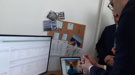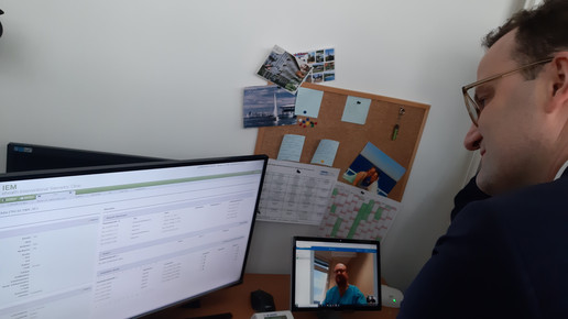 Haseloff und Spahn verfolgten die digitale Sprechstunde beim Allgemeinmediziner Dr. Holzapfel mit regem Interesse.Foto: APOTHEKE ADHOC