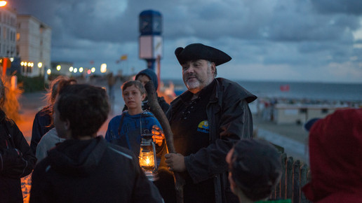 Gruseln auf Borkum: PTA Nils Nörtemann entführt Touristen in die dunklen Geheimnisse der Nordseeinsel.Foto: Leif Neugebohrn
