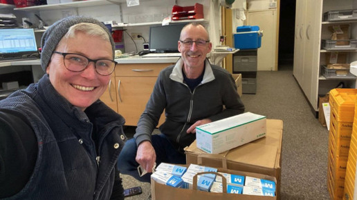 Apotheker wie Dr. Jochen Vetter – hier mit der Ärztin Dr. Gunver Werringloer – schicken Verbandsmaterial und weitere Produkte in die Kriegsregion.Foto: Bären-Apotheke