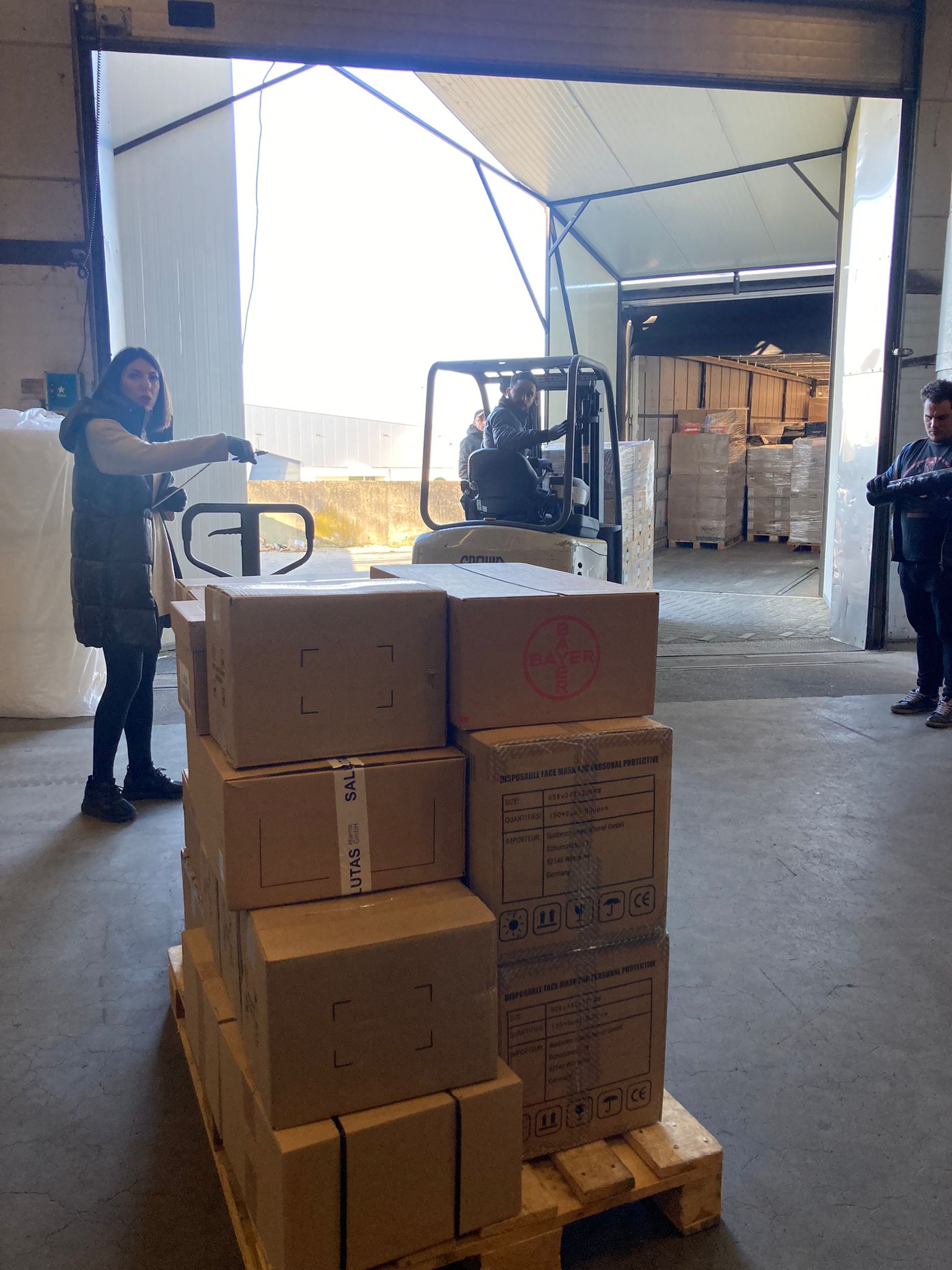 35 Paletten Hilfsgütern gehen an die polnisch-ukrainische Grenze – darunter Milchpulver für Babynahrung, Windeln, Verbandsstoffe, Arznei- und Desinfektionsmittel. Foto: Disapo