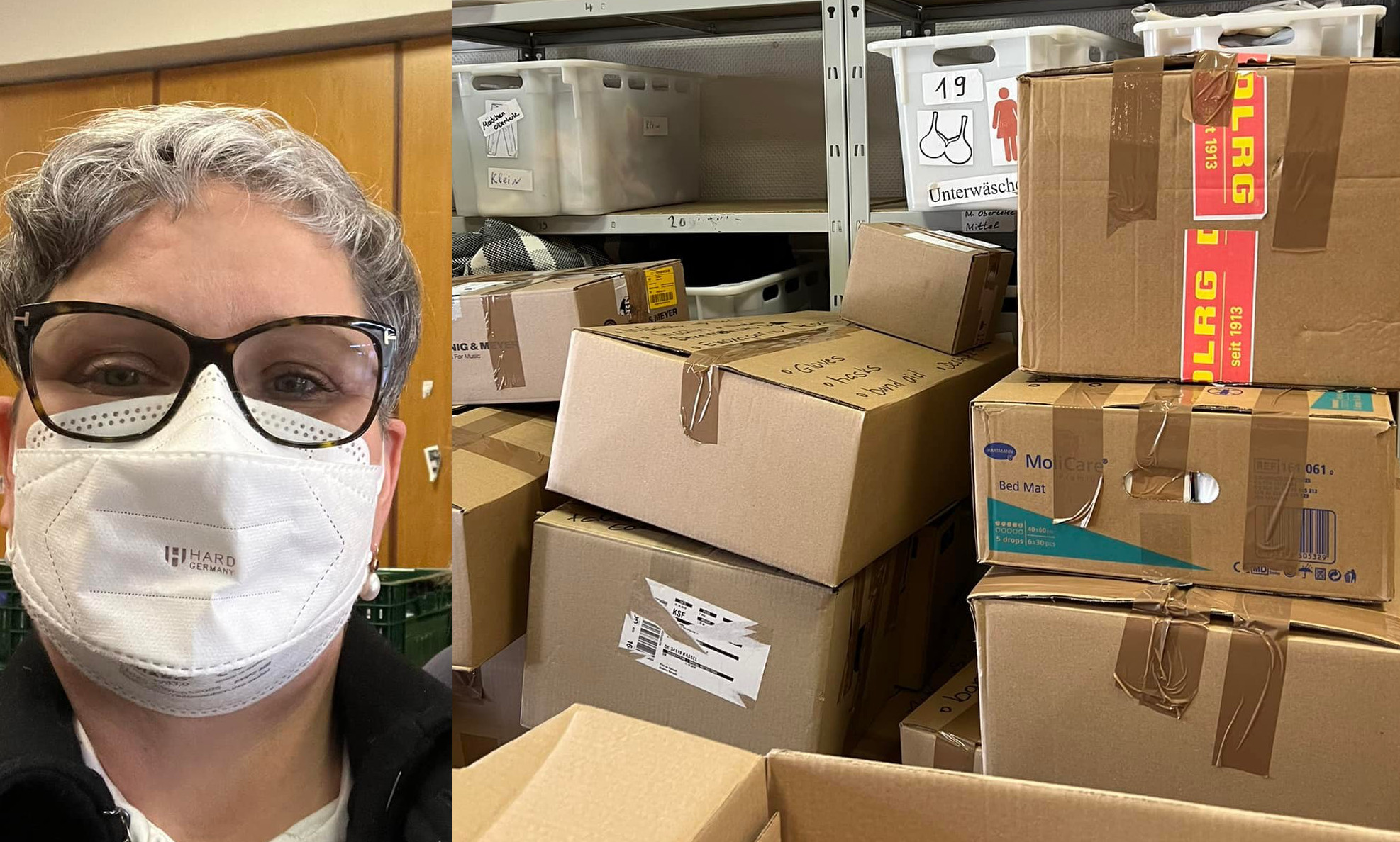 Apothekerin Bettina De Schrijver half mit, eine Hilfslieferung für die Ukraine zu sortieren und zu packen.Fotos: Regenbogen-Apotheke