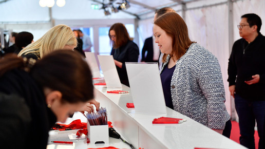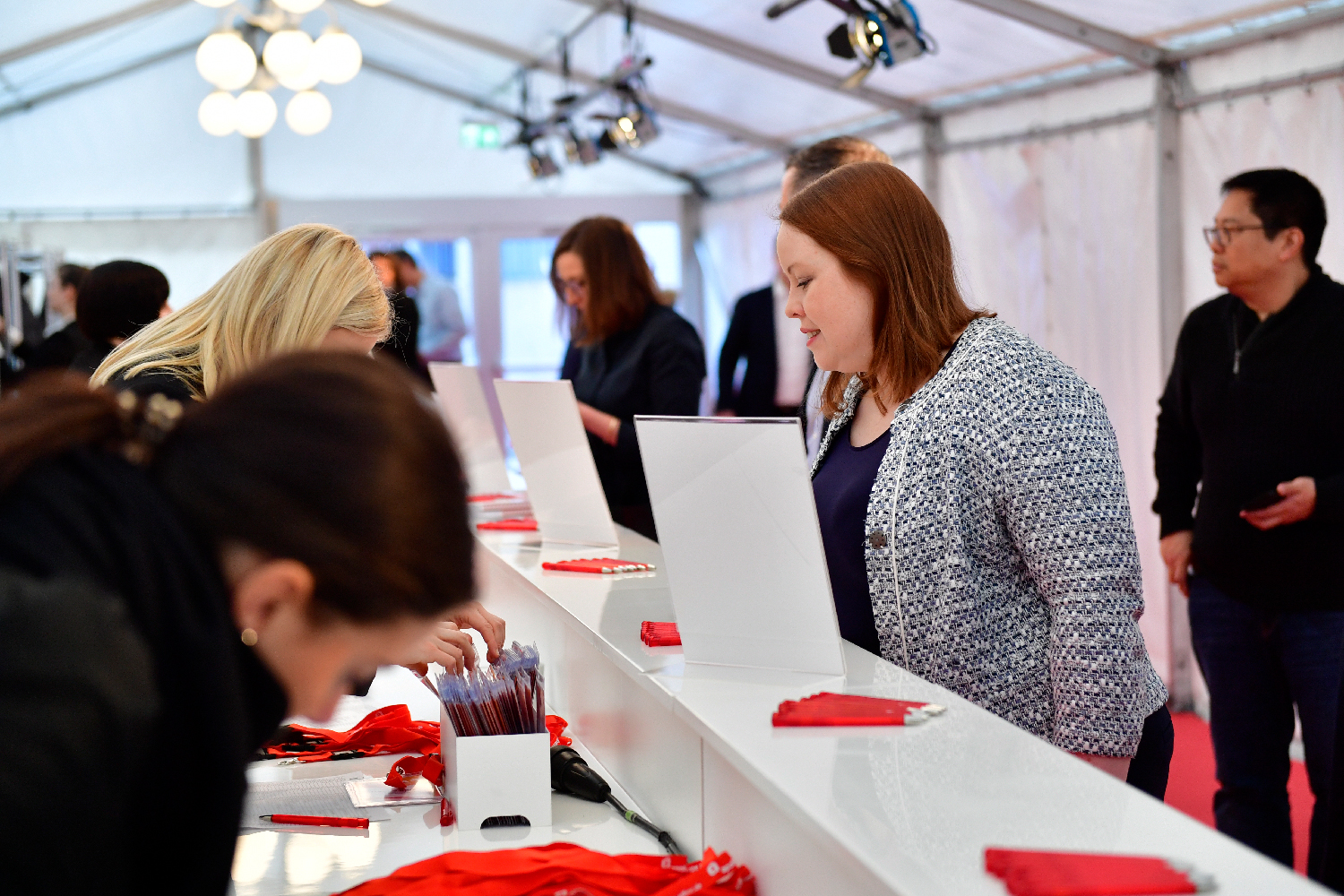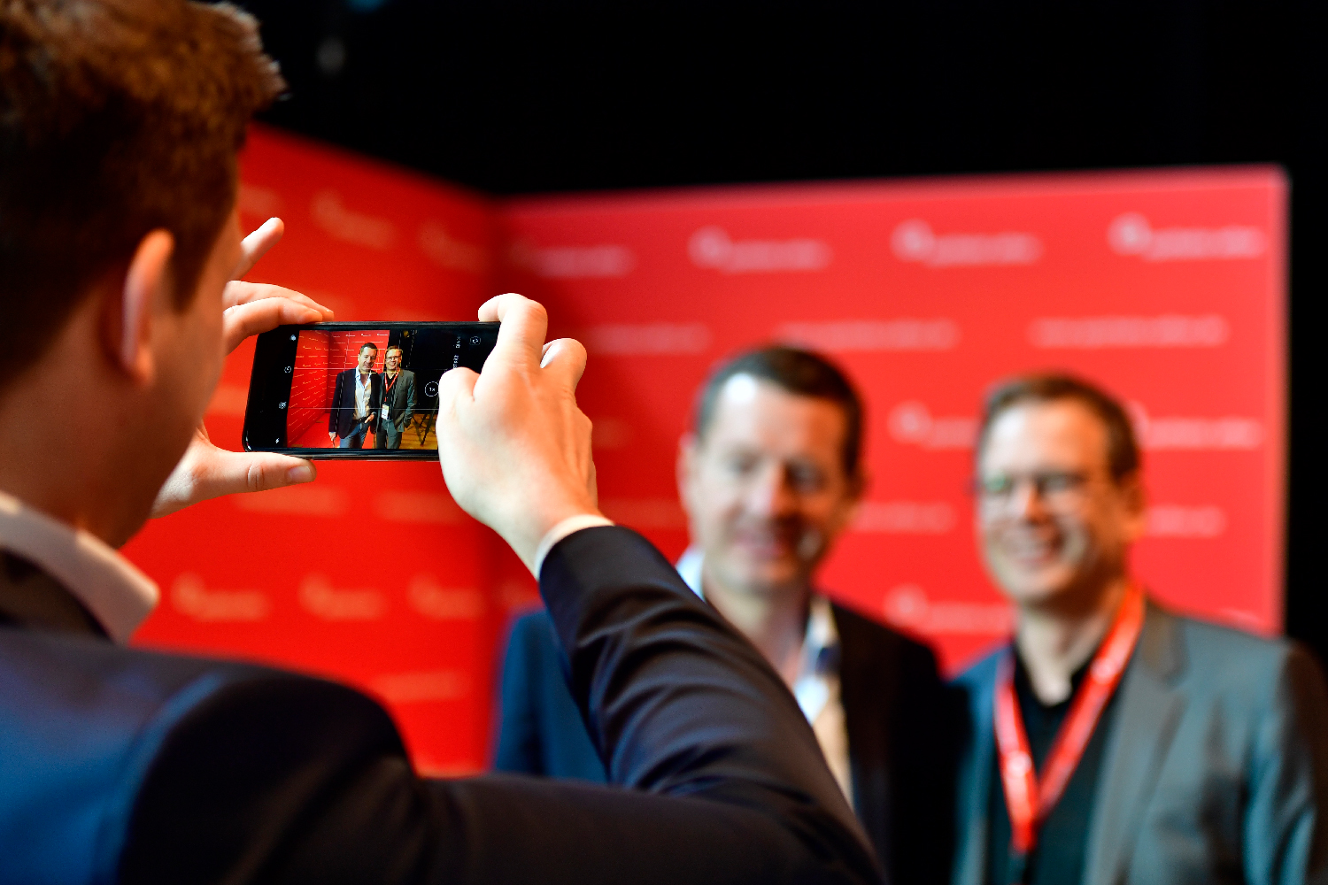 Fotos vor der VISION.A-Wand sind ein Muss.Foto: APOTHEKE ADHOC/Peter van Heesen