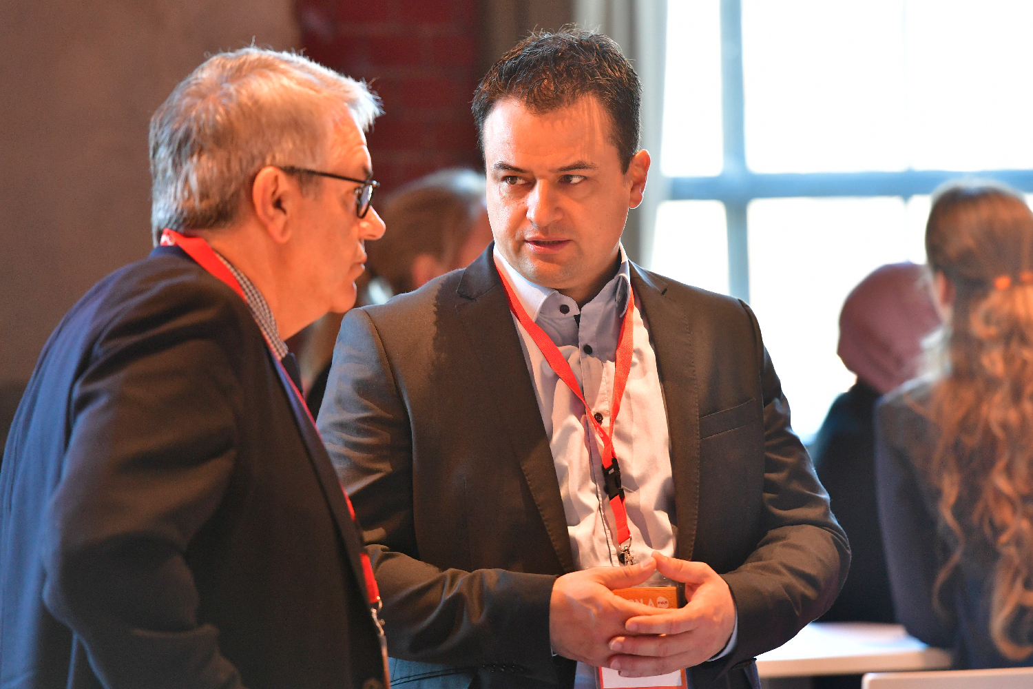 Er eröffnete die Konferenz mit seinem Vortrag.
