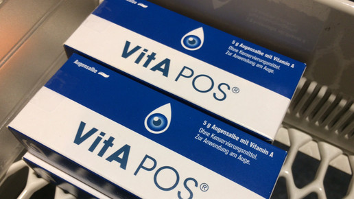 Die Augensalbe mit Vitamin A wechselte von gelb nach blau.Foto: APOTHEKE ADHOC