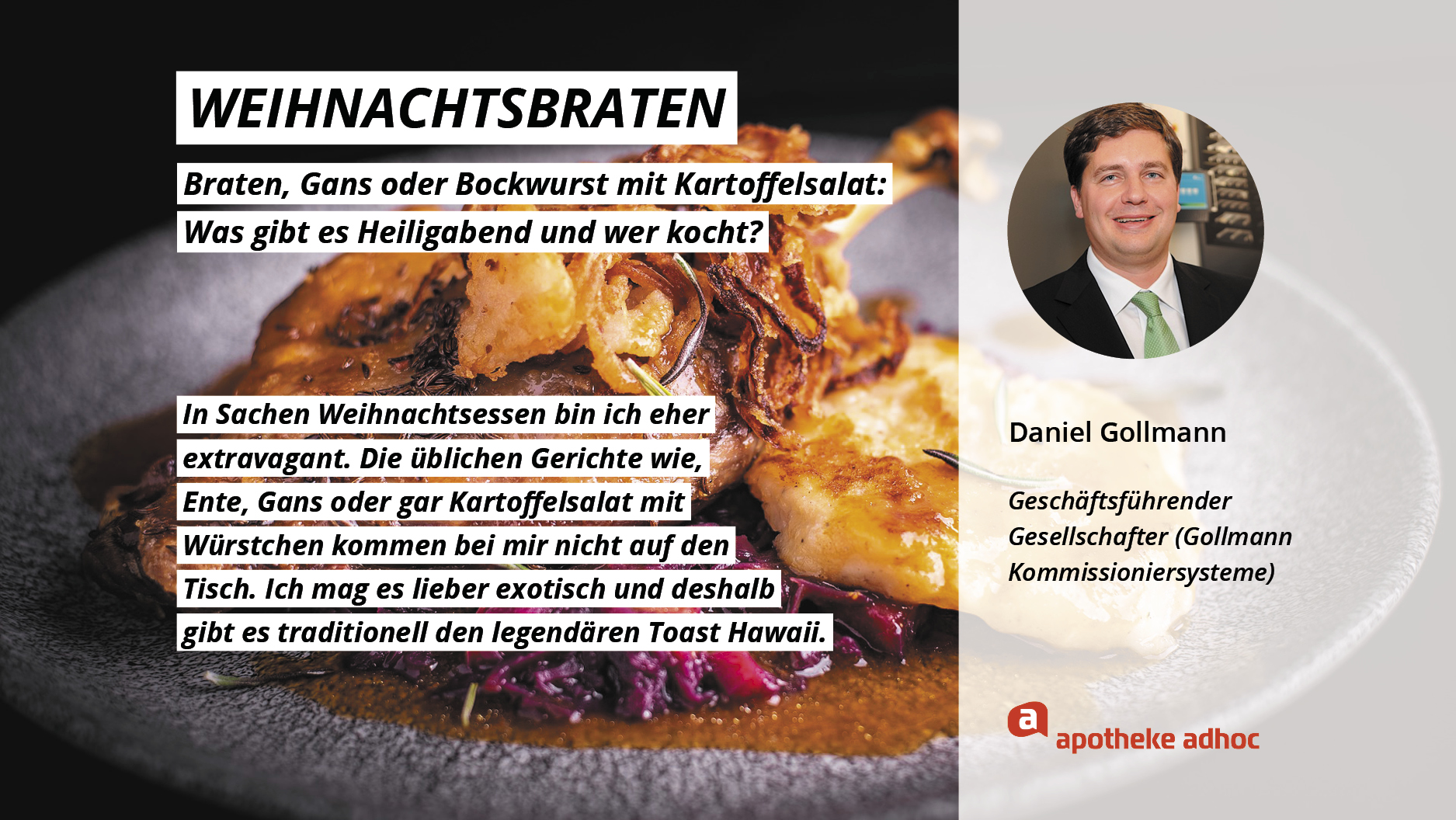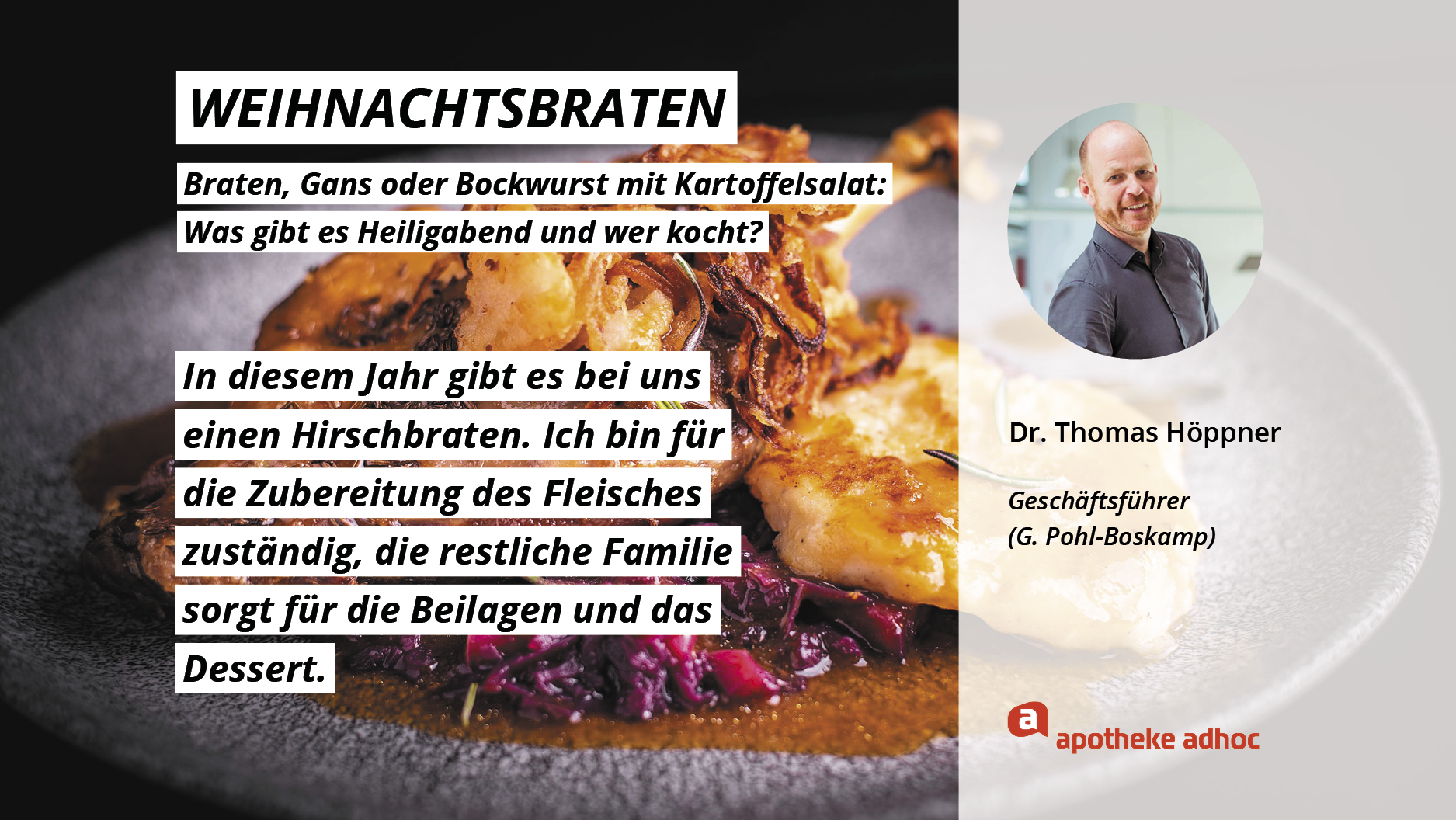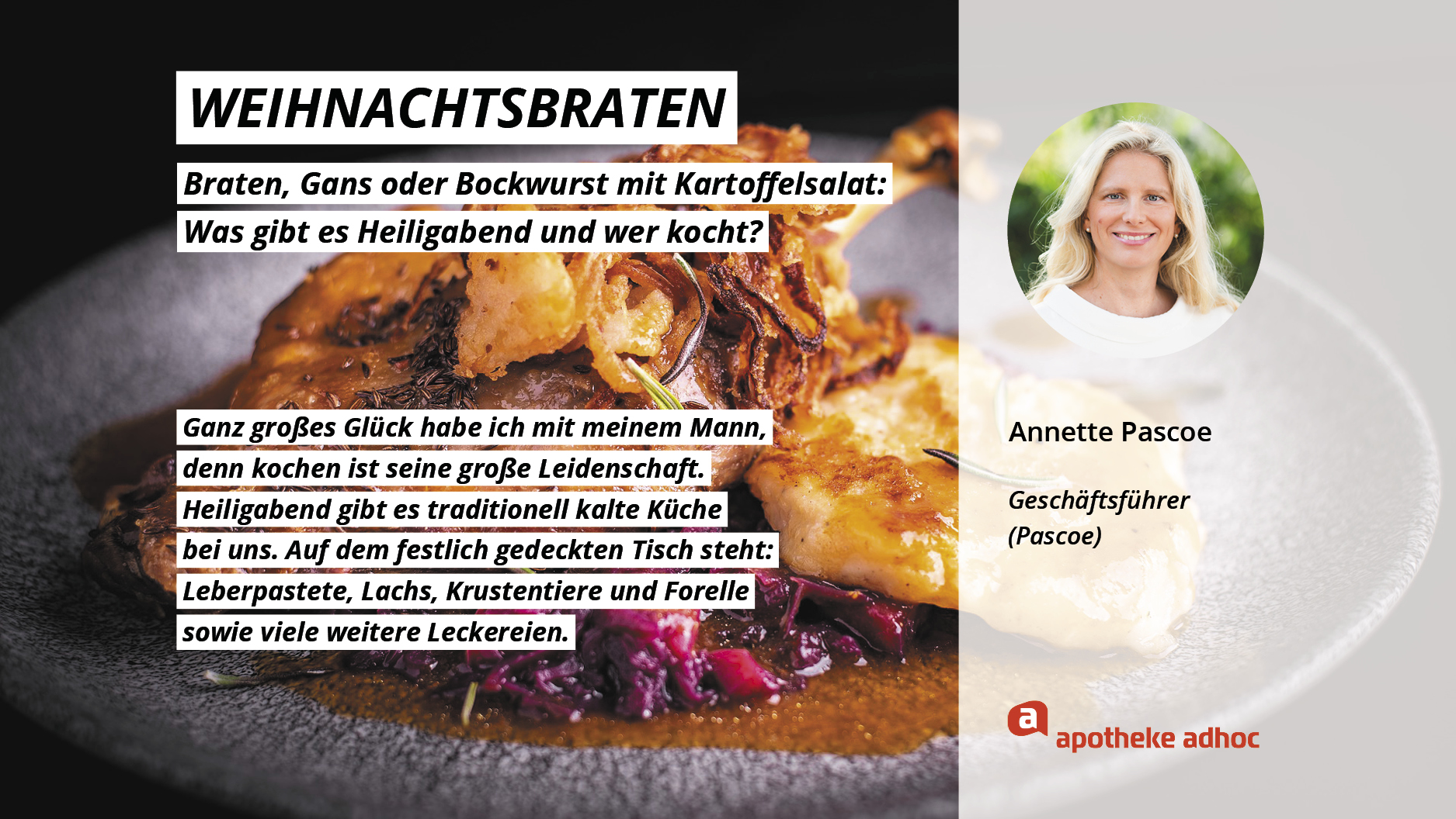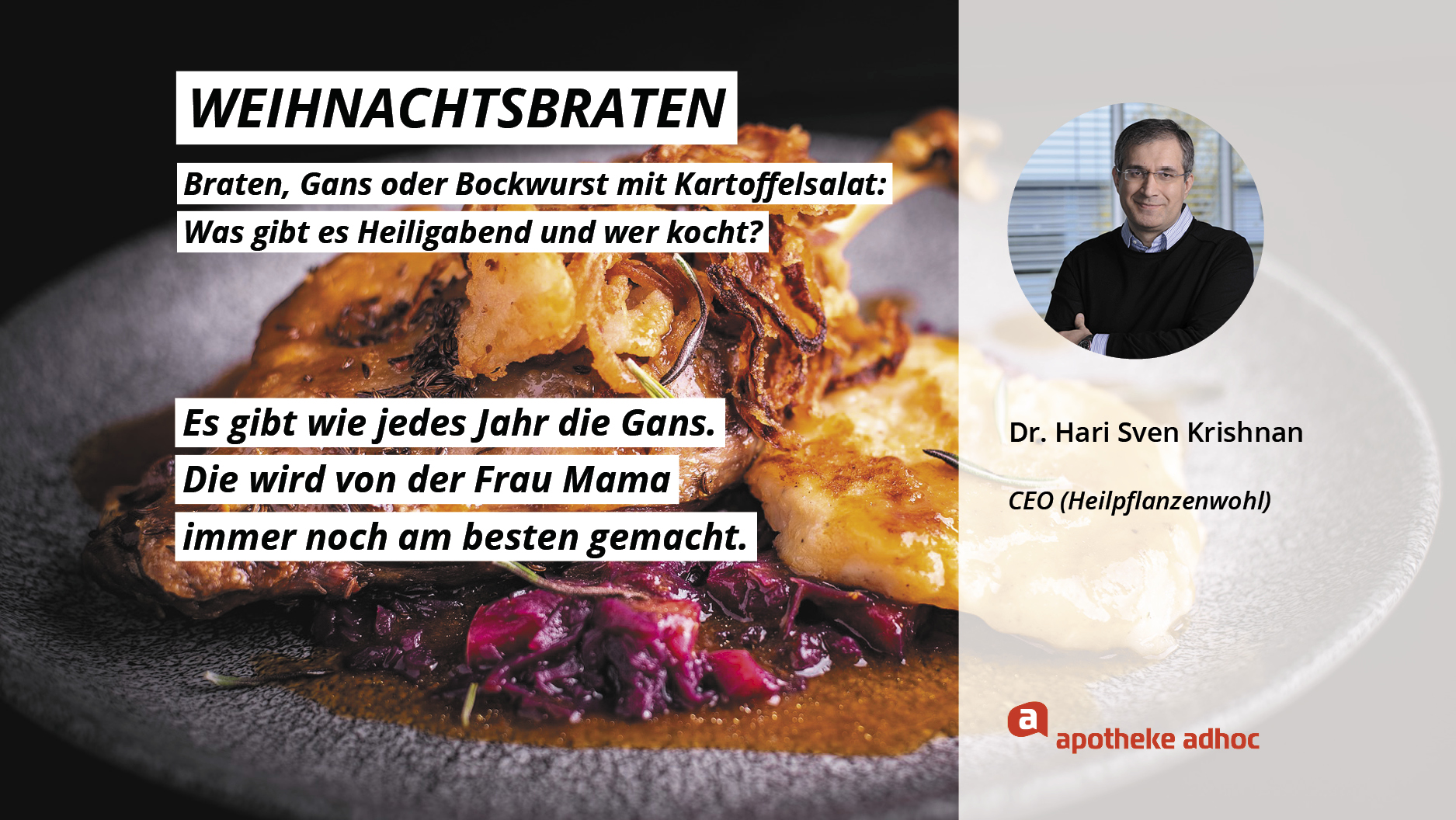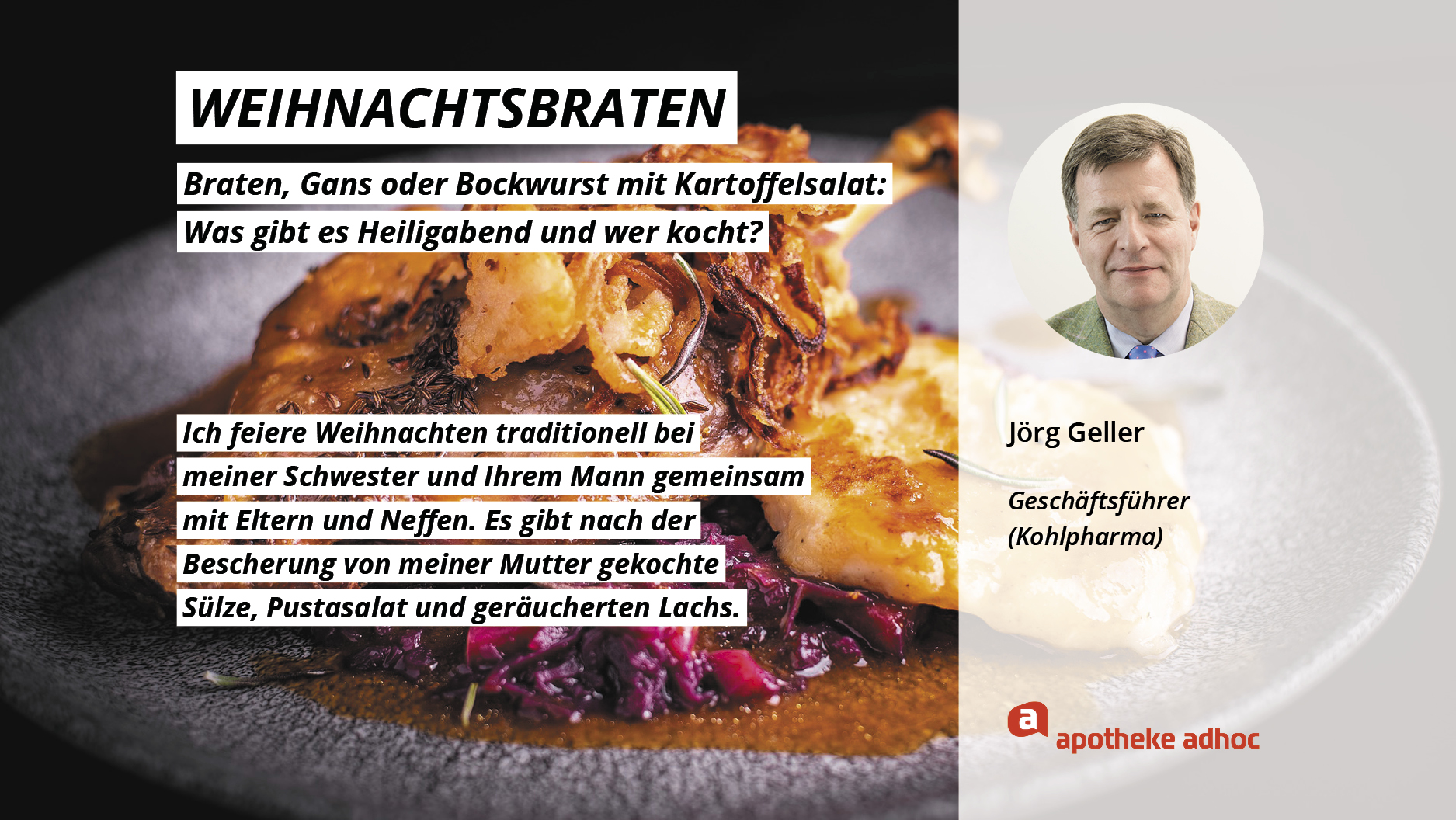 Weihnachten ist das Fest der Liebe – und der Weihnachtsmenüs. Hier verraten die Pharma-Promis, was bei ihnen Heiligabend auf den Tisch kommt und wer bei ihnen in der Küche steht.