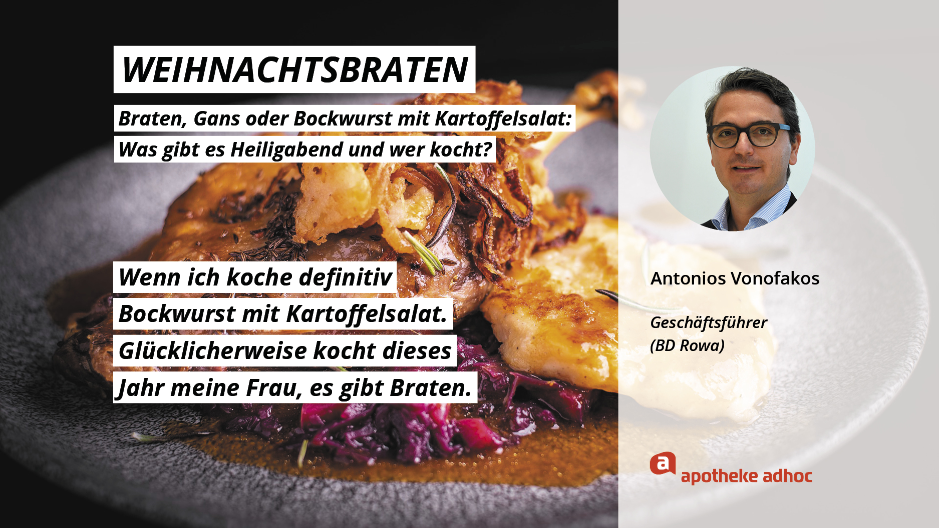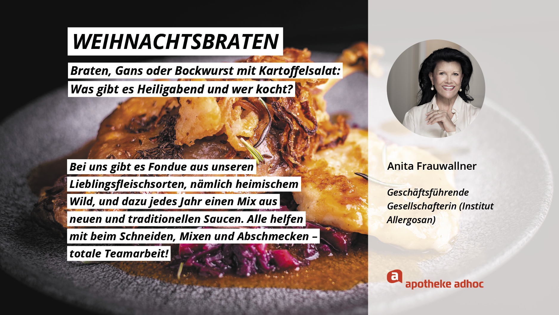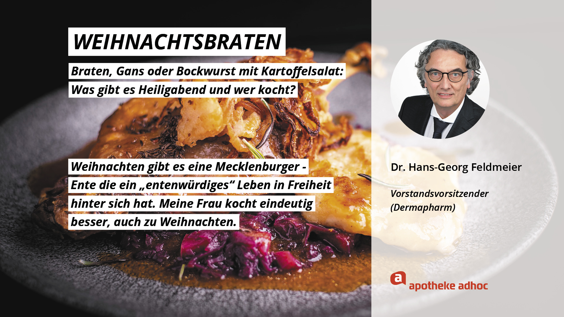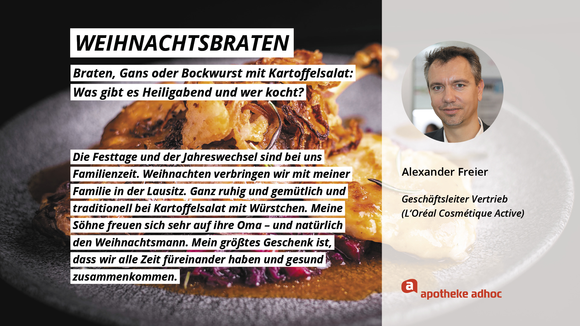 Weihnachten ist das Fest der Liebe – und der Weihnachtsmenüs. Hier verraten die Pharma-Promis, was bei ihnen Heiligabend auf den Tisch kommt und wer bei ihnen in der Küche steht.